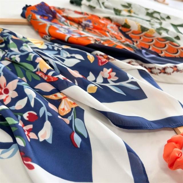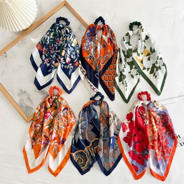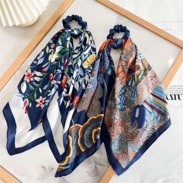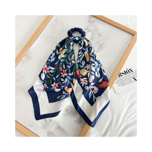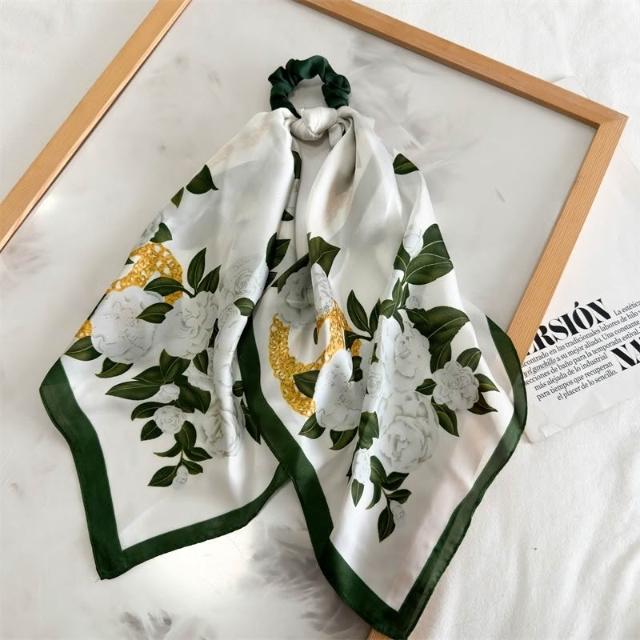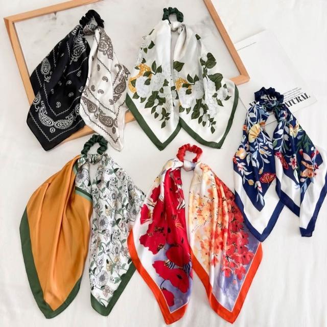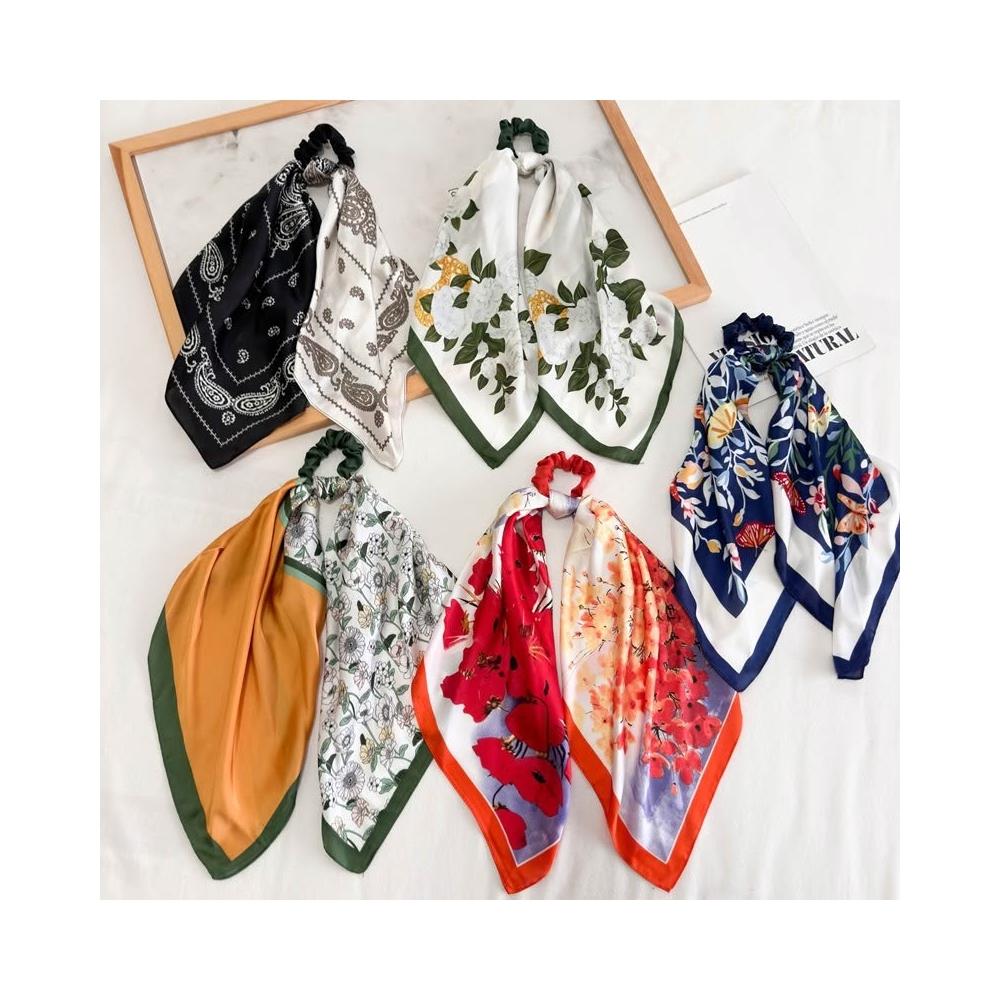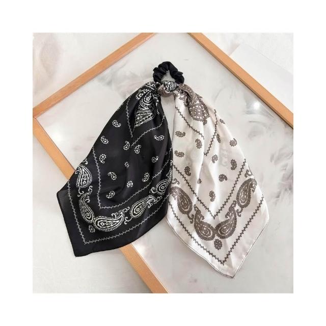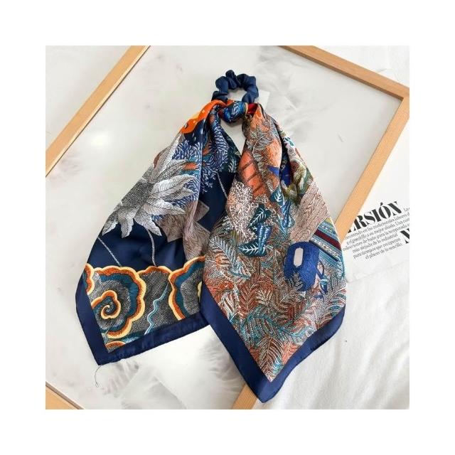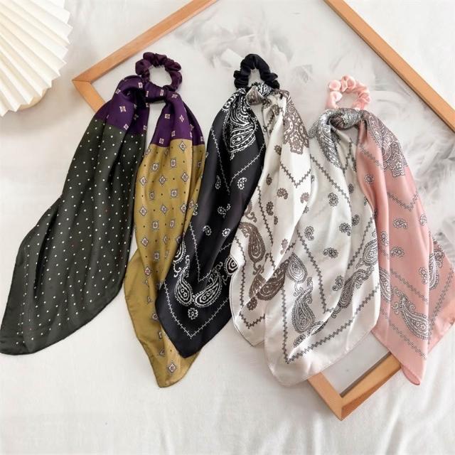 iss Si【現貨速發絲綢緞面大號方巾二合一飄帶 二戴式 馬尾包頭髮圈髮帶 歐美 韓國時尚可拆髮帶頭飾裝飾品頭飾