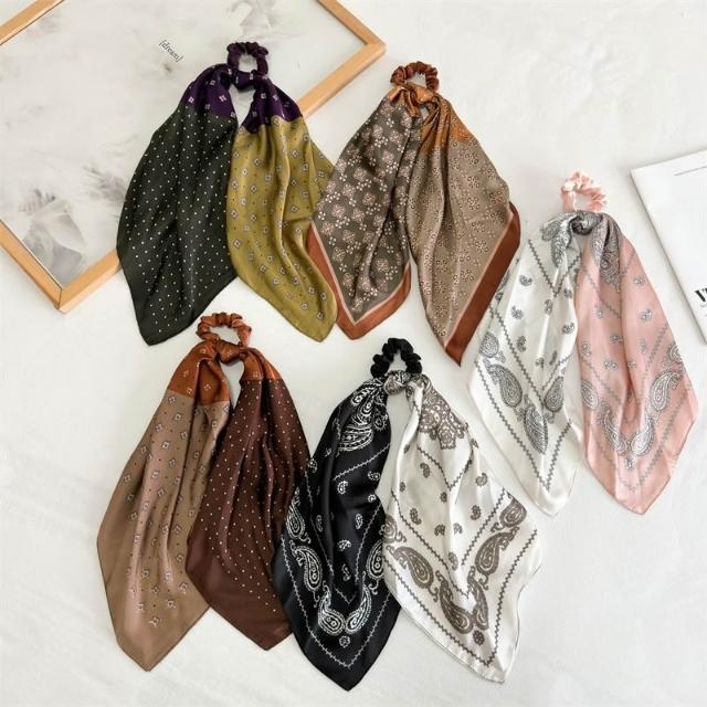 Miss Si【現貨速發】絲綢緞面大號方巾二合一飄帶 二戴式 馬尾包頭髮圈髮帶 歐美 韓國時尚可拆髮帶頭飾裝飾品頭飾