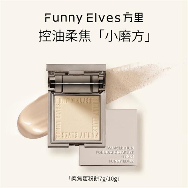 咪醬的美妝店FUNNY ELVES 光感柔焦蜜粉餅 送卸妝巾x2