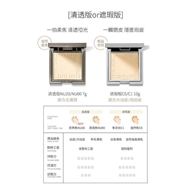 咪醬的美妝店FUNNY ELVES 光感柔焦蜜粉餅 送卸妝巾x2