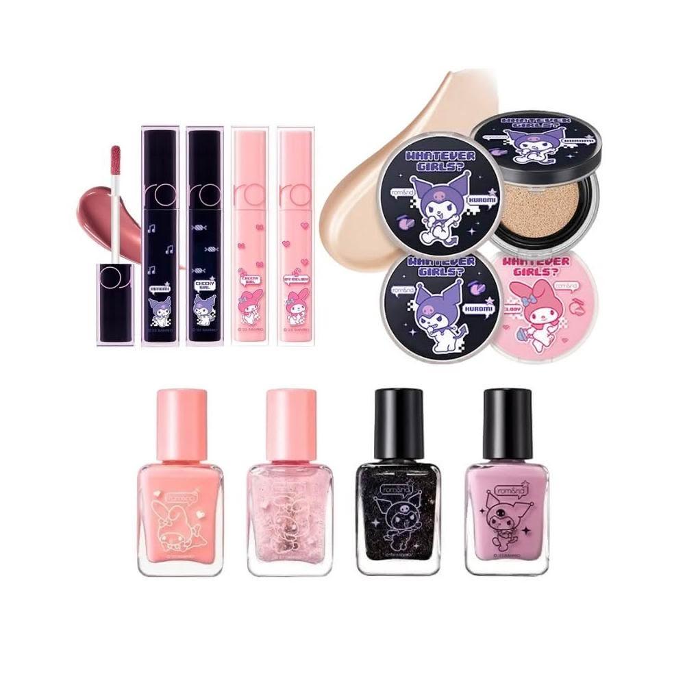 rom&nd即期 ROMAND酷洛米美樂蒂 柔焦氣墊/豐露唇釉/指甲油/十色眼影盤 聯名款