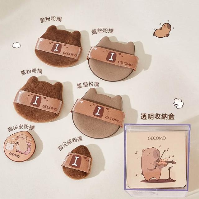 咪醬的美妝店卡皮巴拉粉撲套盒 6枚 氣墊粉撲散粉撲拇指粉撲
