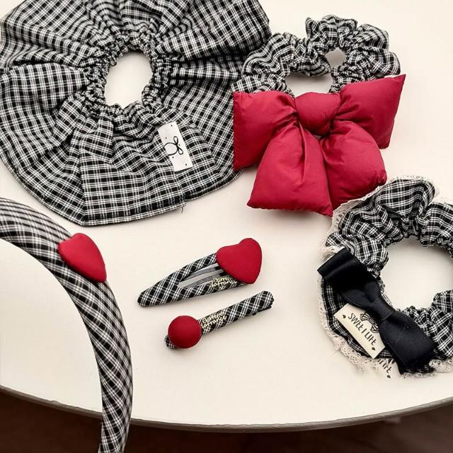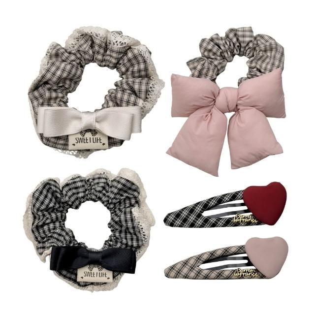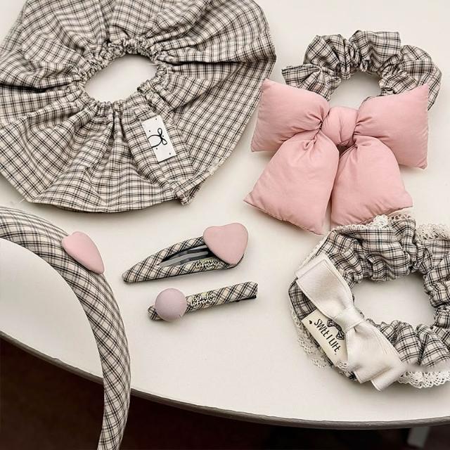 咪醬的美妝店格紋蝴蝶結髮圈 髮箍 愛心髮夾