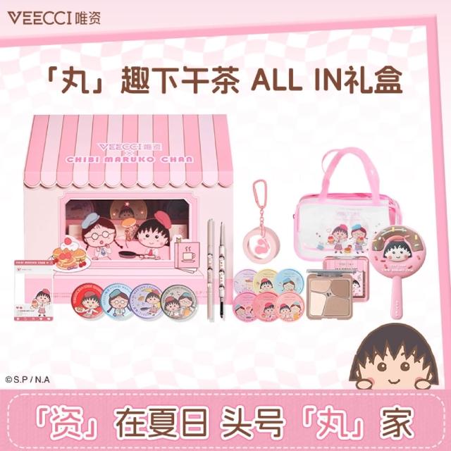 VECCI 唯資櫻桃小丸子聯名禮盒 丸趣下午茶ALL IN禮盒 眼線膠筆氣墊腮紅修容盤