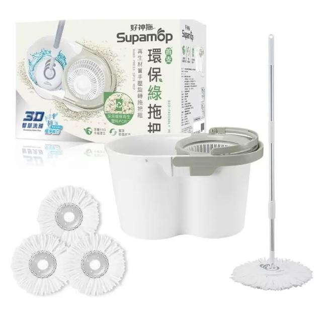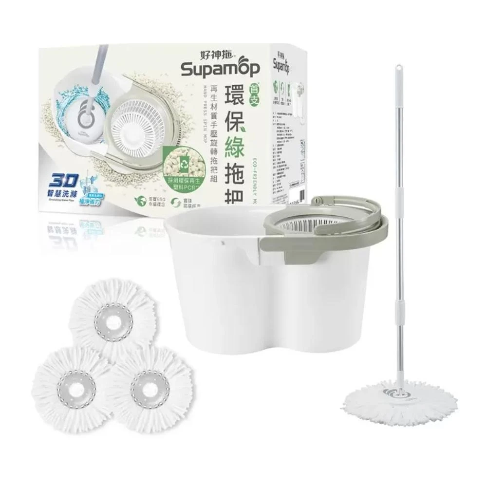 好神拖環保手壓式洗脫雙效旋轉拖把組 附替換布盤 3入#220232