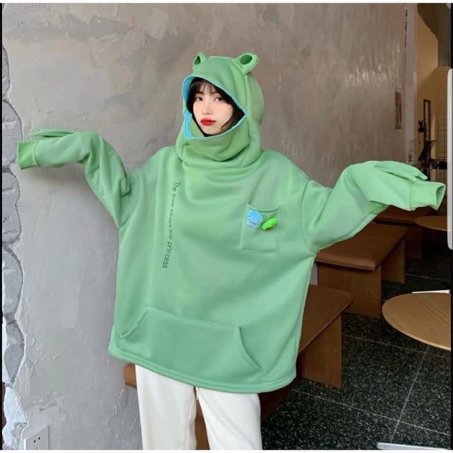 B1 地下室連帽T恤 港風ins超火青蛙套頭情侶長袖上衣 嘻哈情侶裝 連帽衛衣 NL661062(大學T oversize 帽T)