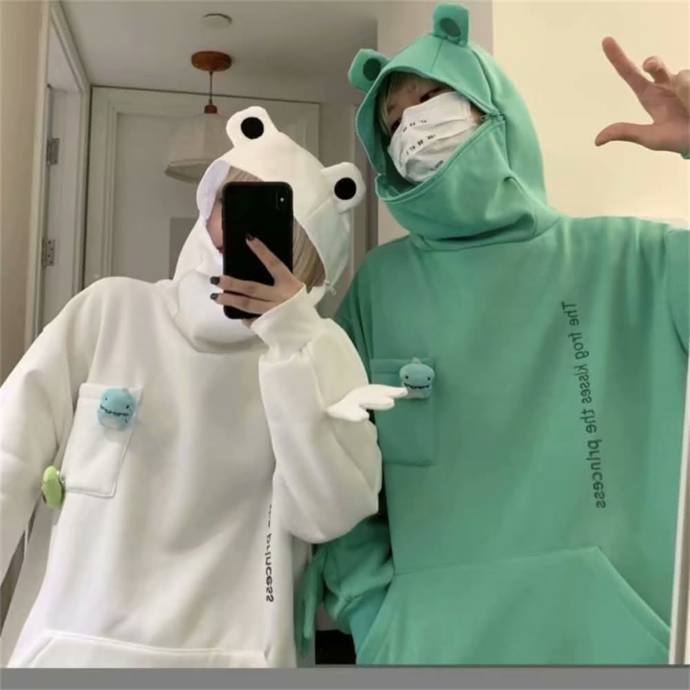 B1 地下室連帽T恤 港風ins超火青蛙套頭情侶長袖上衣 嘻哈情侶裝 連帽衛衣 NL661062(大學T oversize 帽T)