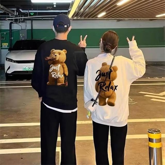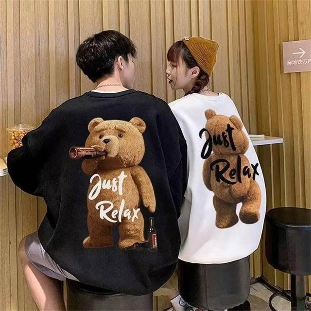 B1 地下室情侶裝 啤酒小熊大學T 長袖T恤 刷毛長T 加絨 男生衣服 情侶服 5XL NL662126(男生衣服 刷毛 情侶裝)