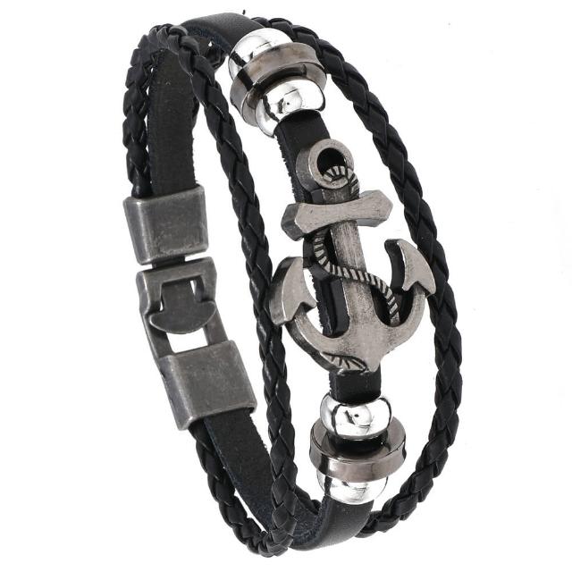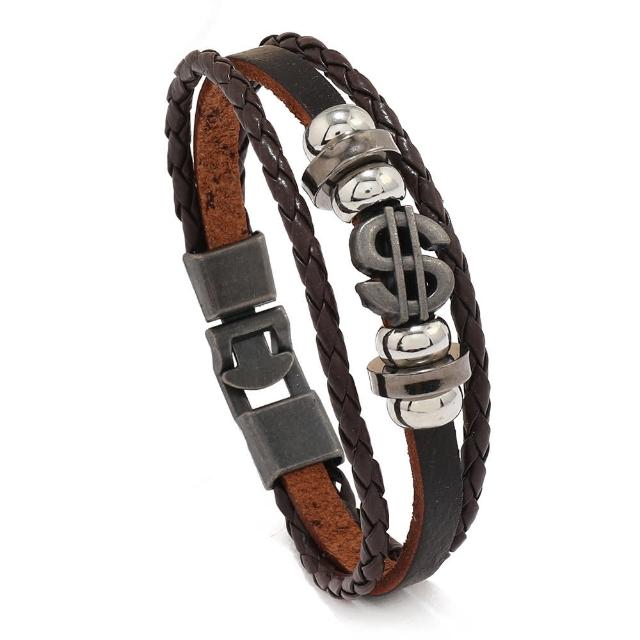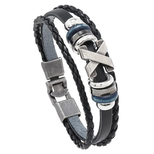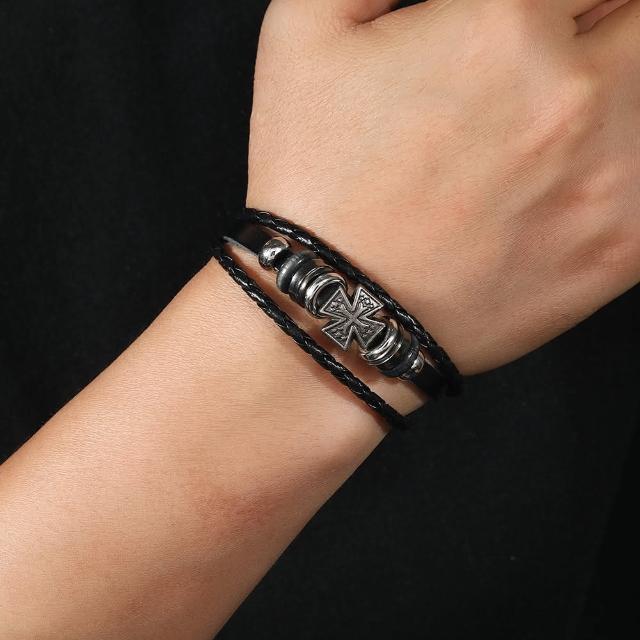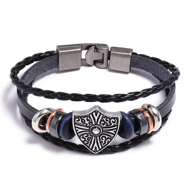 B1 地下室現貨∣手環 美式型男編織皮手鍊 皮手環 多圈手鍊 男生手鍊 手鍊 手鍊男 手環男 NT64006(手環 皮手環 皮革手環 男手環 情侶手鍊 手鍊女)