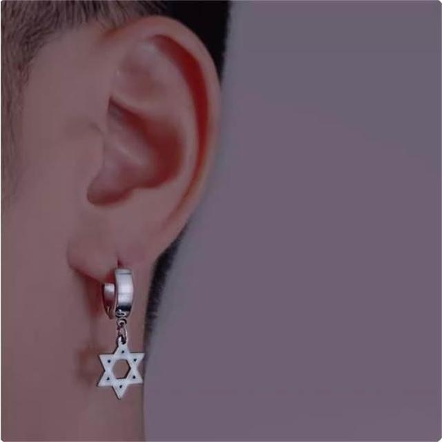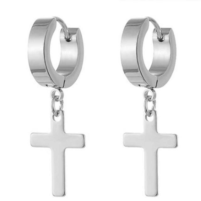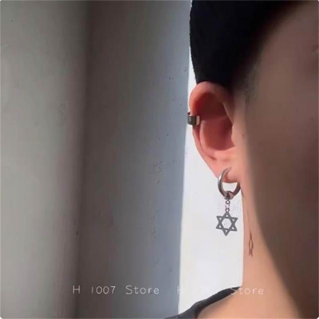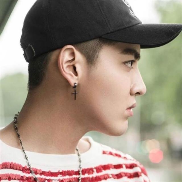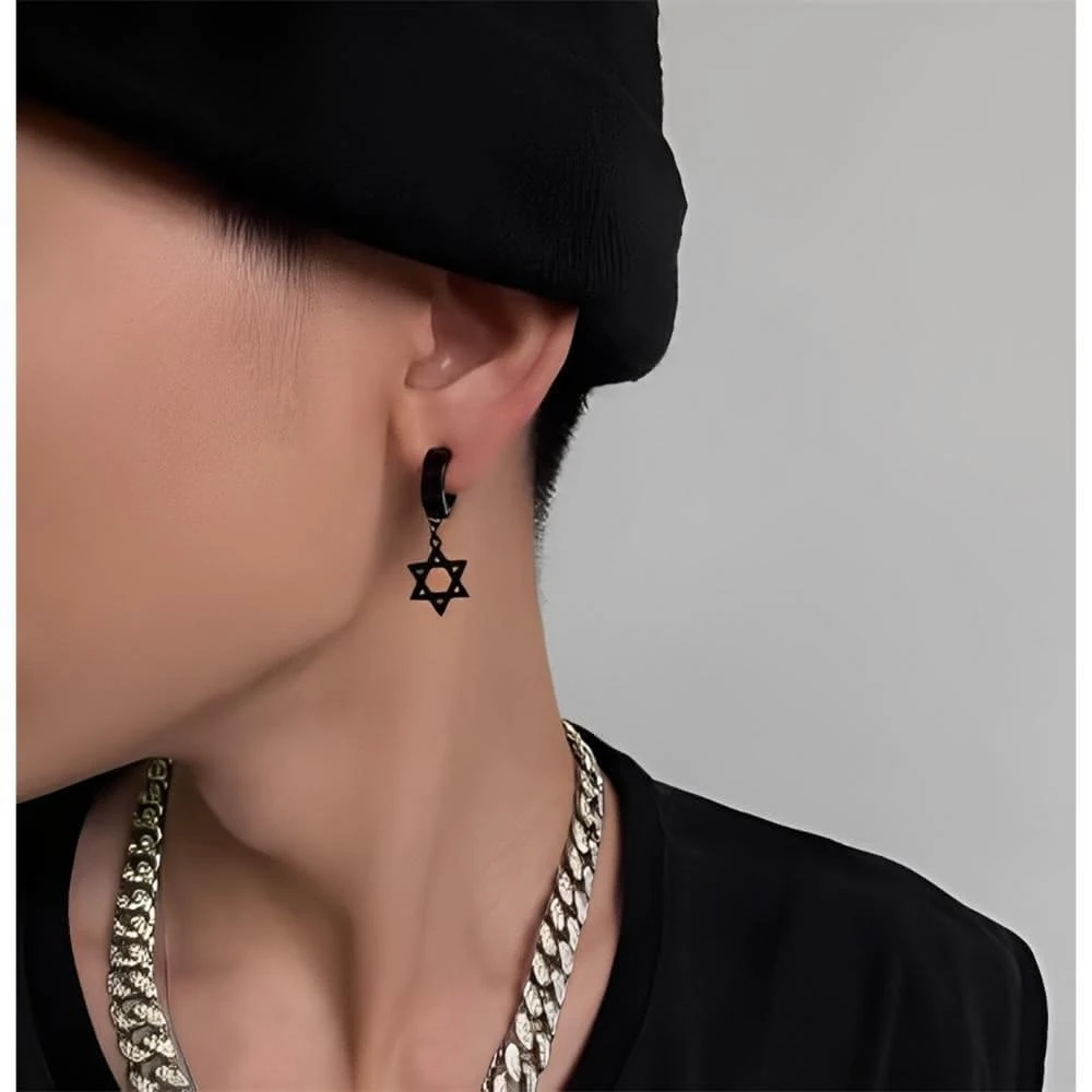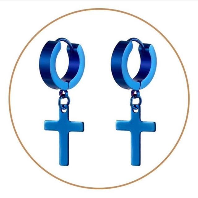 B1 地下室現貨∣耳環 歐美時尚鈦鋼十字架六芒星耳環 男生耳環 不鏽鋼耳環 耳針 NT74004(耳環 鈦鋼耳環 耳釘 耳針)