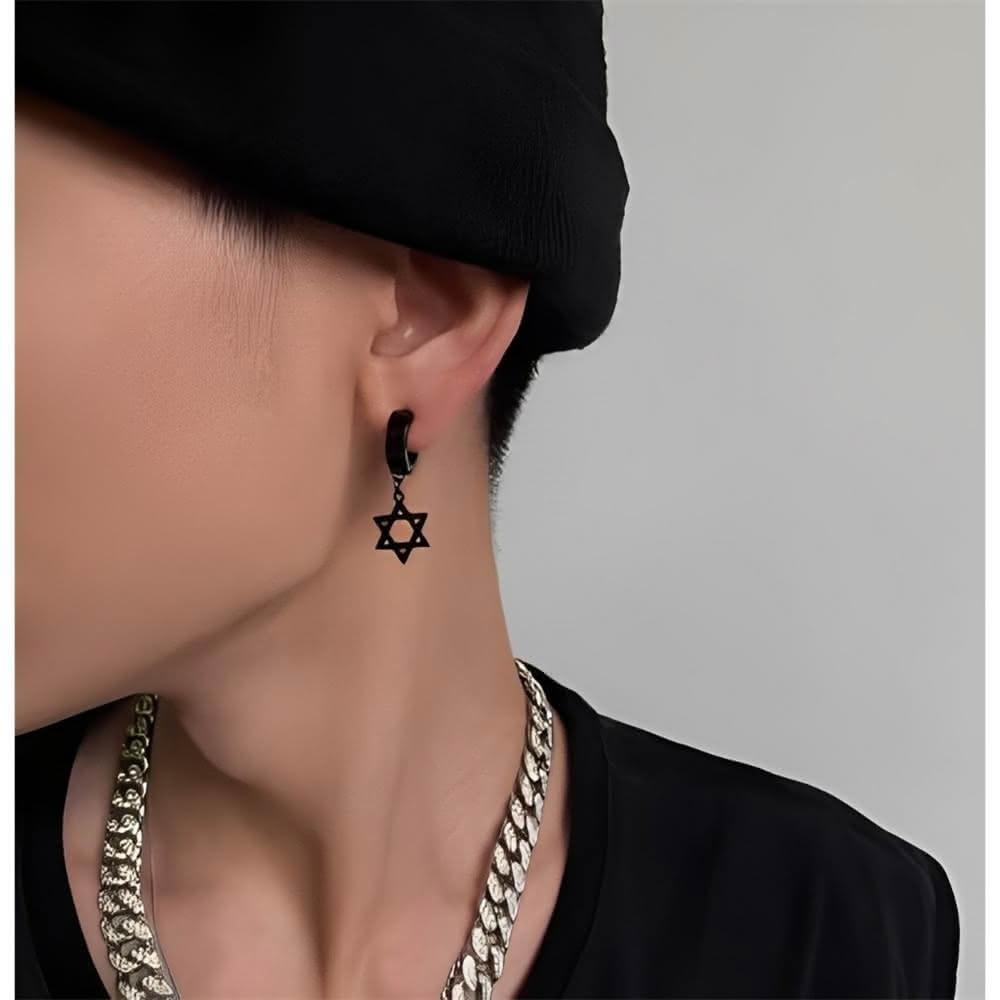 B1 地下室現貨∣耳環 歐美時尚鈦鋼十字架六芒星耳環 男生耳環 不鏽鋼耳環 耳針 NT74004(耳環 鈦鋼耳環 耳釘 耳針)