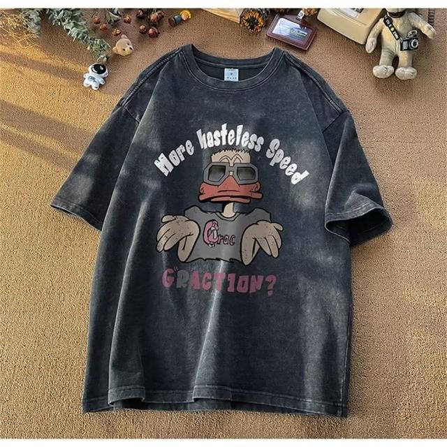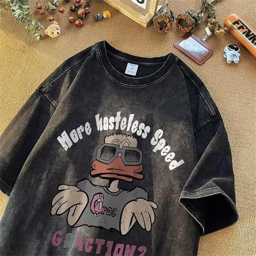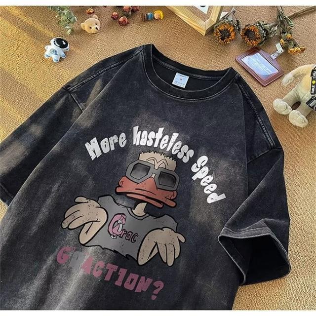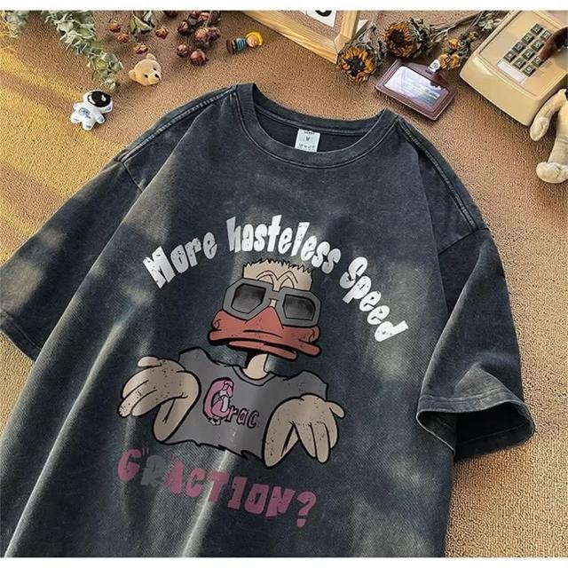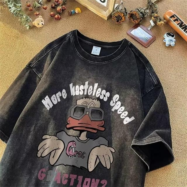 B1 地下室短袖上衣 韓版潮流卡通嘻哈鴨子印刷短袖T恤 寬鬆 半袖 男生衣服 大尺碼5XL NL624357 (男短T 五分袖 卡通 短袖上衣)