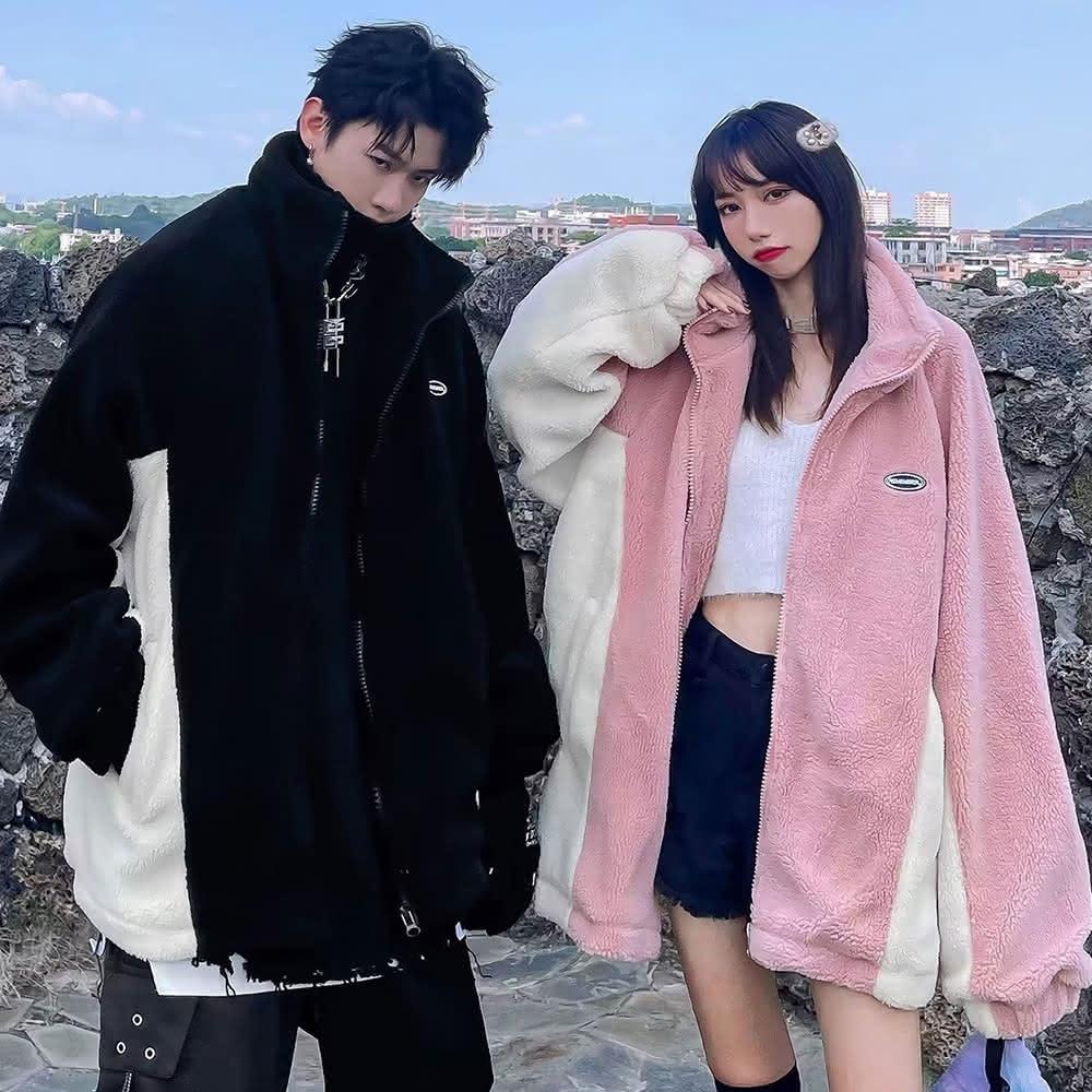 B1 地下室情侶外套 韓版秋冬保暖拼接羊羔毛外套 情侶裝 男生衣服 休閒夾克 外套男 NL683119 (連帽外套 秋冬外套 情侶外套 休閒外套 羊羔毛外套 保暖外套)
