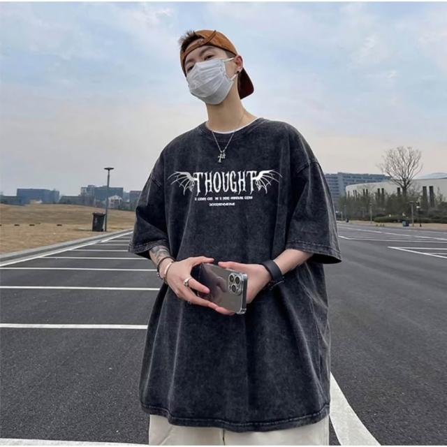B1 地下室T恤 歐美水洗個性玫瑰花印花短T 圓領 美式復古上衣 男生衣服 5XL大尺碼 NL623706 (男生上衣 短袖上衣 暗黑系T 中大尺碼)