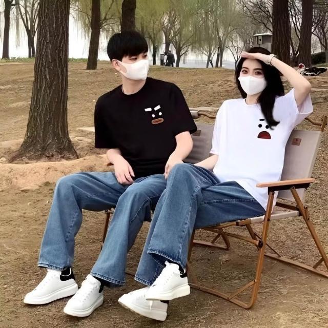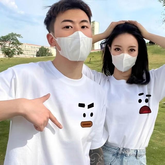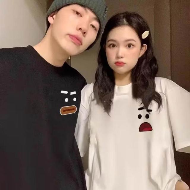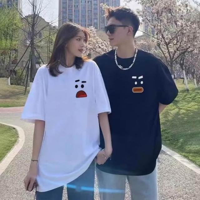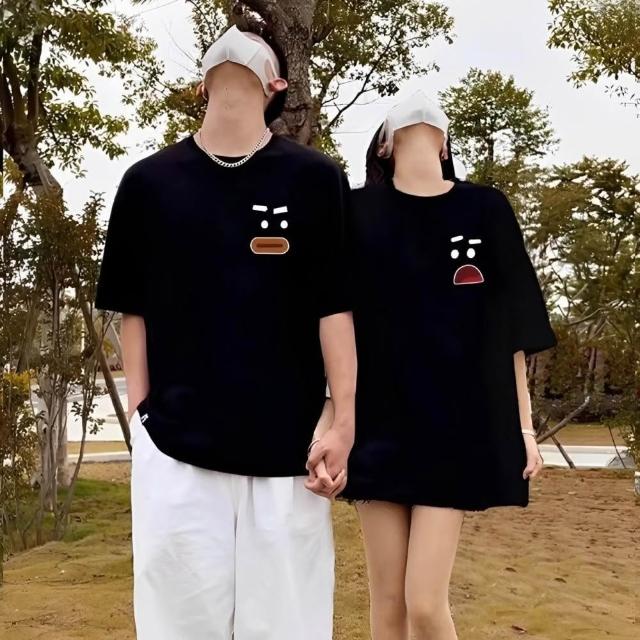 B1 地下室短袖 休閒Q版表情印花t恤 夏季穿搭 情侶裝男生衣服 大尺碼5XL男裝 NL623575(情侶衣 男短T 塗鴉表情T)