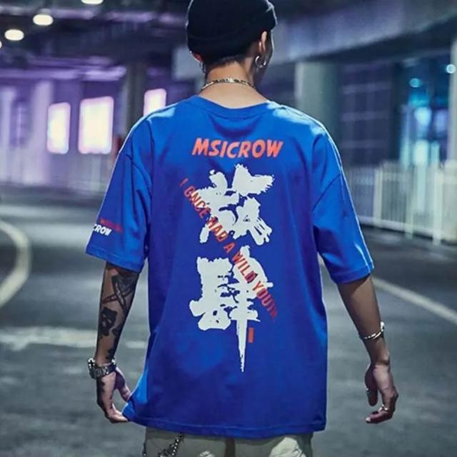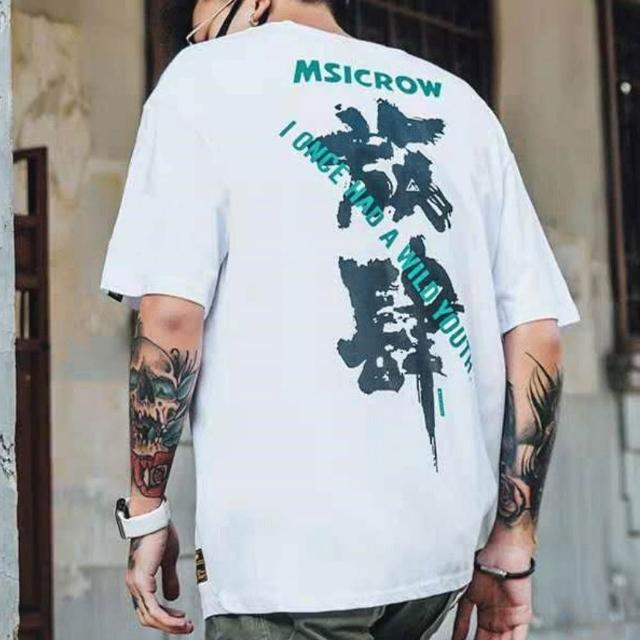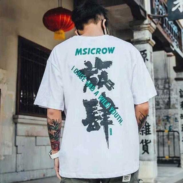 B1 地下室情侶衣 短T恤 韓版MSICROW放肆個性印花大尺碼五分袖短袖上衣5XL男裝 NL621258 (潮流文字T 塗鴉 情侶T 男生短T)