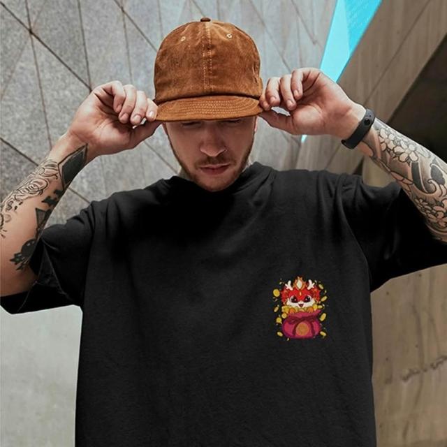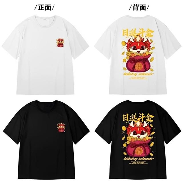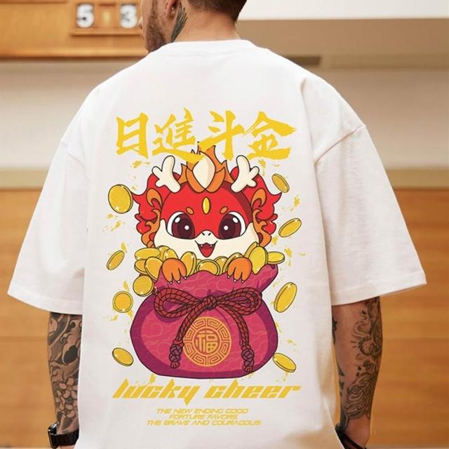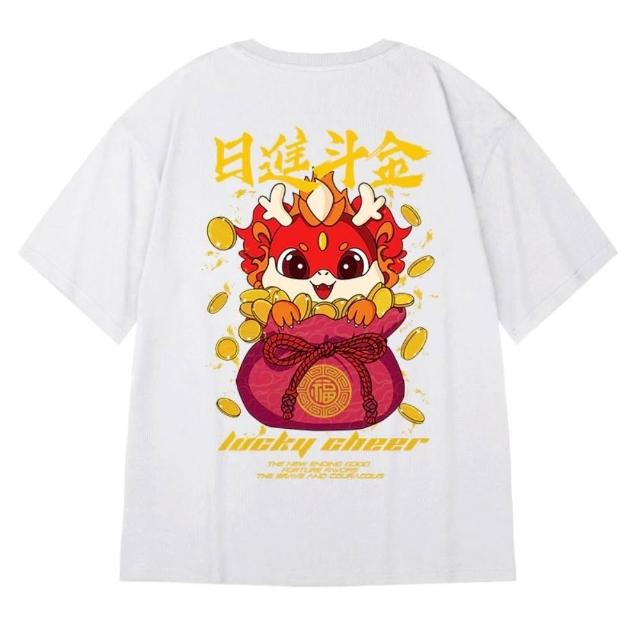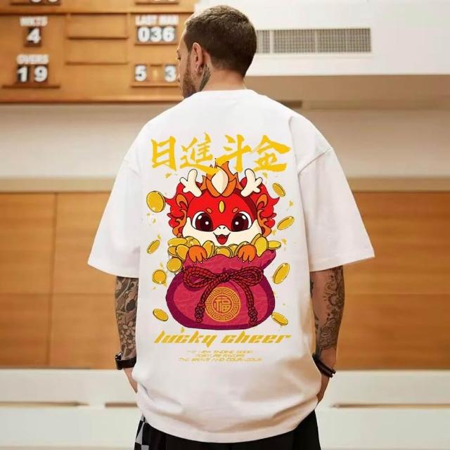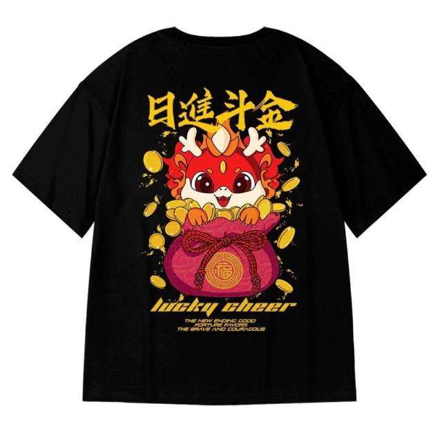 B1 地下室短袖T恤 港風日進斗金可愛印花短T恤 五分袖 寬鬆 男生衣服 大尺碼8XL NL624063(男短T 卡通龍 大尺碼)