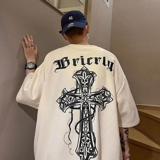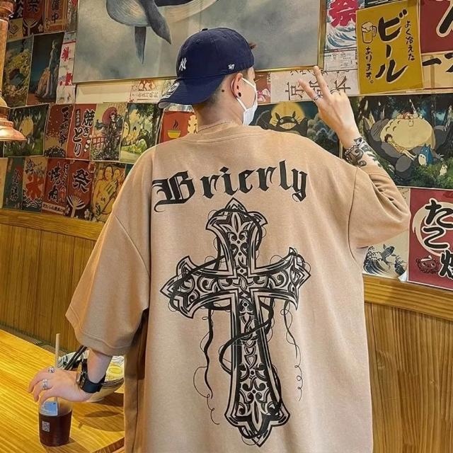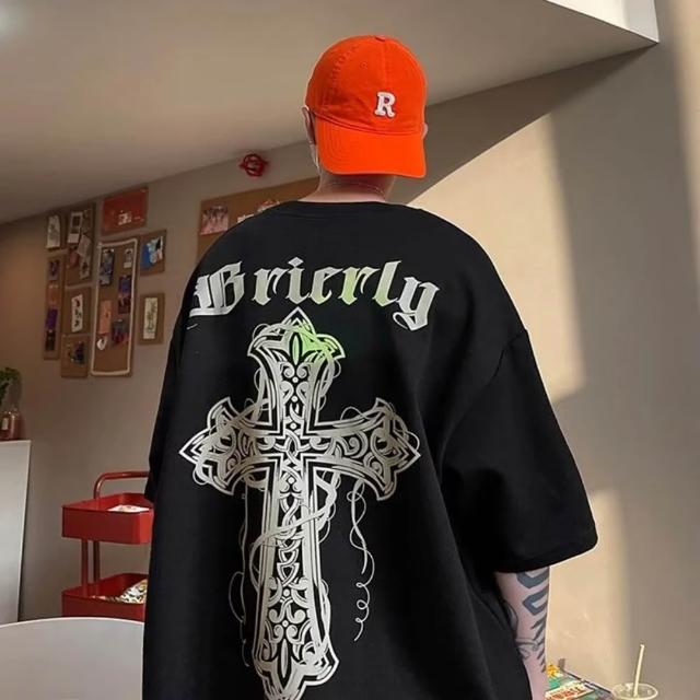 B1 地下室T恤 街頭十字架Brierly休閒潮流短袖 男生衣服 男裝 五分袖 大尺碼5XL男裝NL623373(短袖上衣 潮流 歌德字 十字架 男生短T )