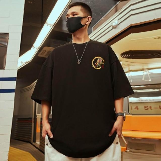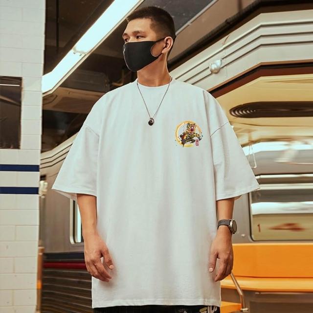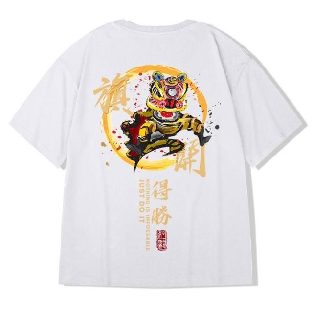 B1 地下室T恤港風旗開得勝印花短袖上衣短T夏季衣服大尺碼8XLNL623645 (男短T潮流 文字T 文創T 短袖上衣 大尺碼)