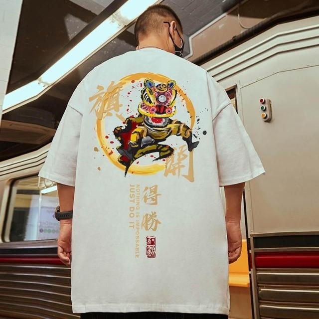 B1 地下室T恤港風旗開得勝印花短袖上衣短T夏季衣服大尺碼8XLNL623645 (男短T潮流 文字T 文創T 短袖上衣 大尺碼)