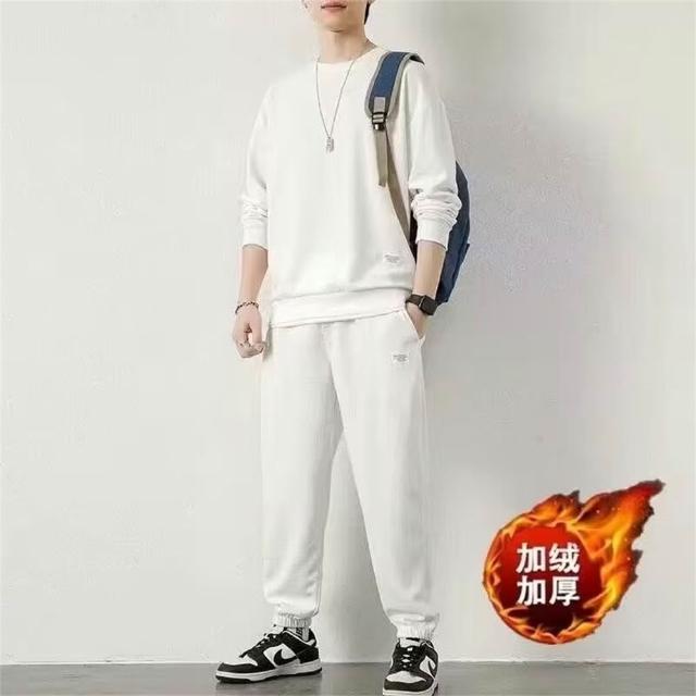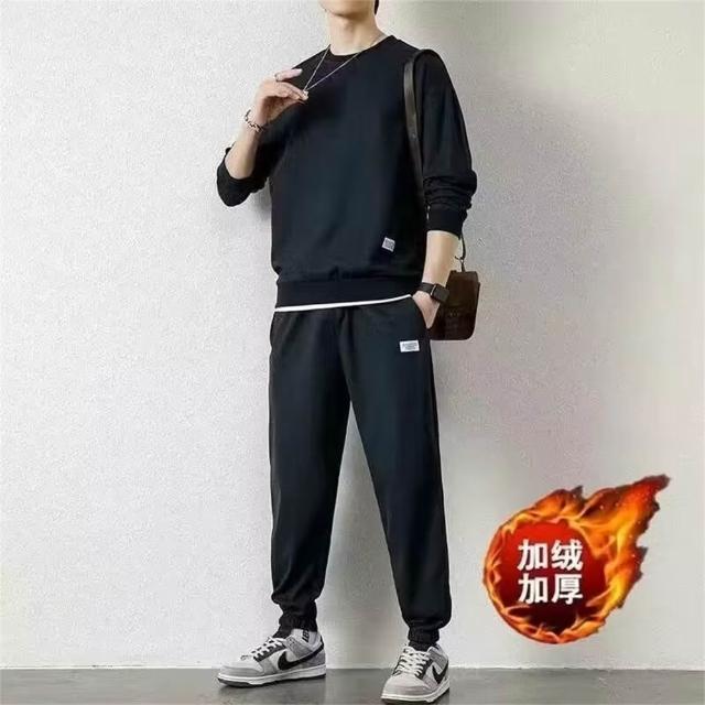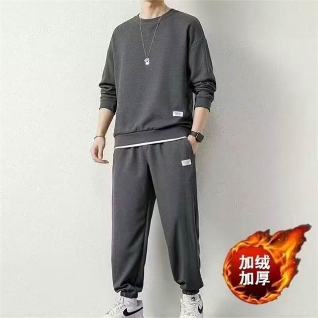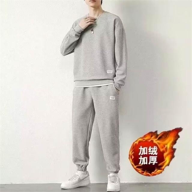 B1 地下室套裝 休閒百搭華夫格加絨運動套裝 男裝 寬鬆 日常穿搭 大尺碼5XL NL664163