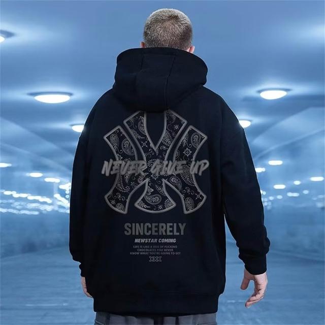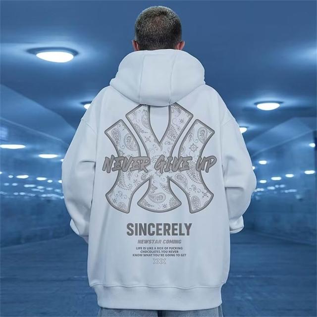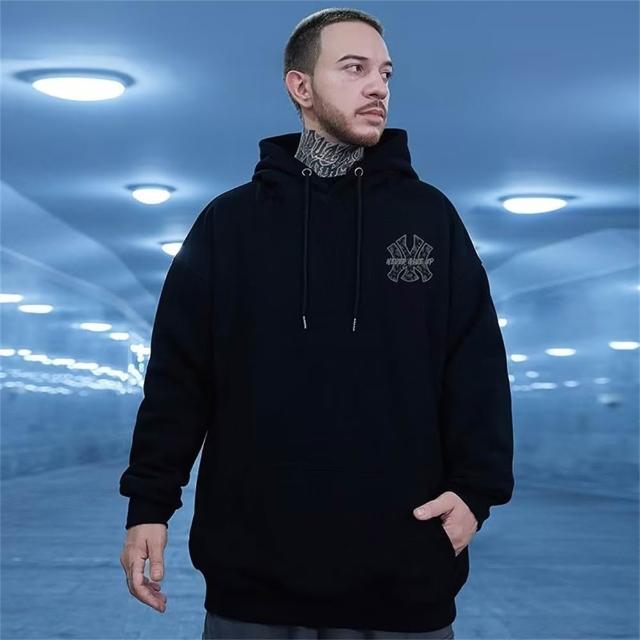B1 地下室帽T 嘻哈NeverGiveUp印刷連帽長袖T恤 男生衣服 美式復古上衣 大尺碼8XL NL663110