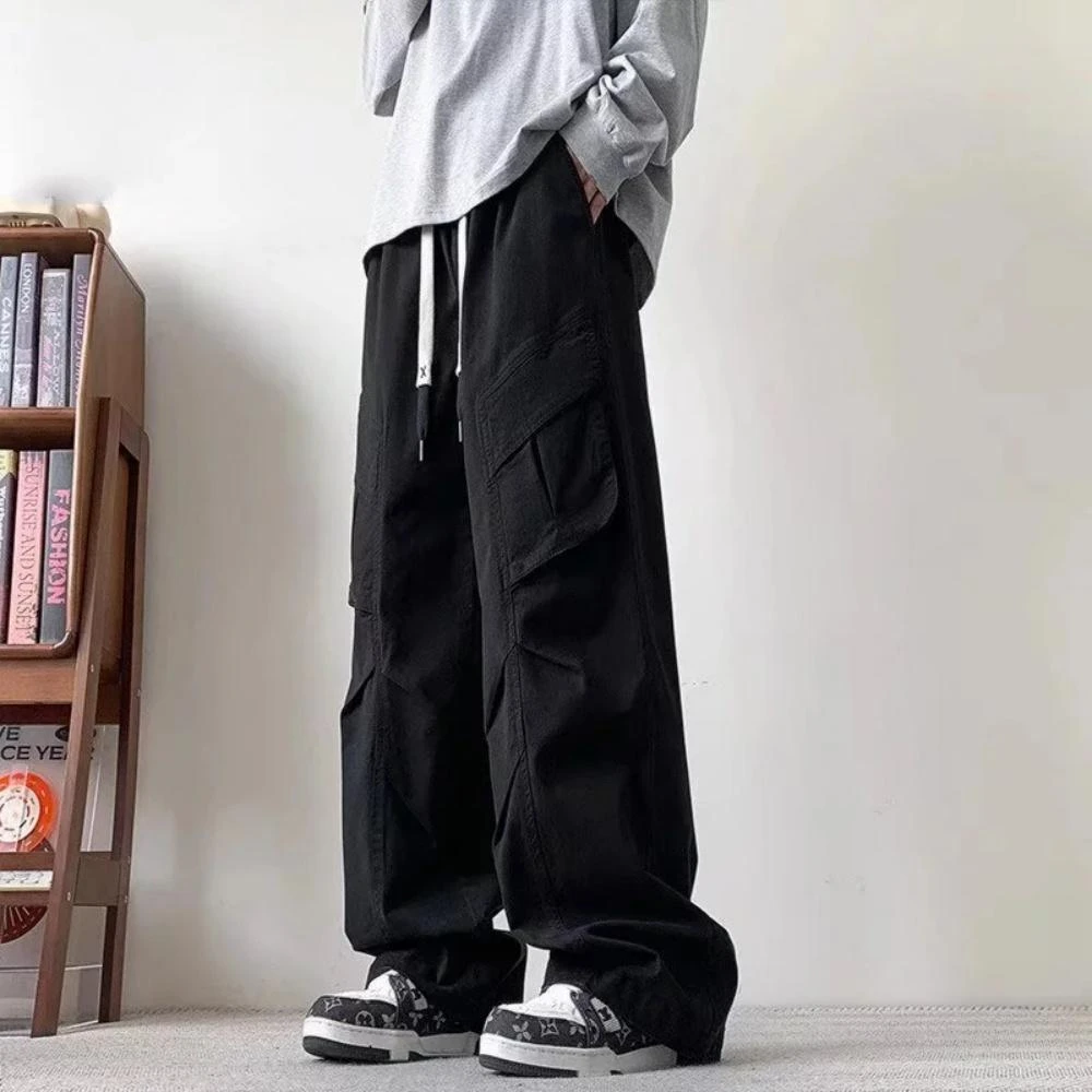 B1 地下室 快速出貨 寬褲 日系休閒寬褲 大口袋工裝褲直筒長褲 抽繩 男生褲子 大尺碼5XL男裝NL654230