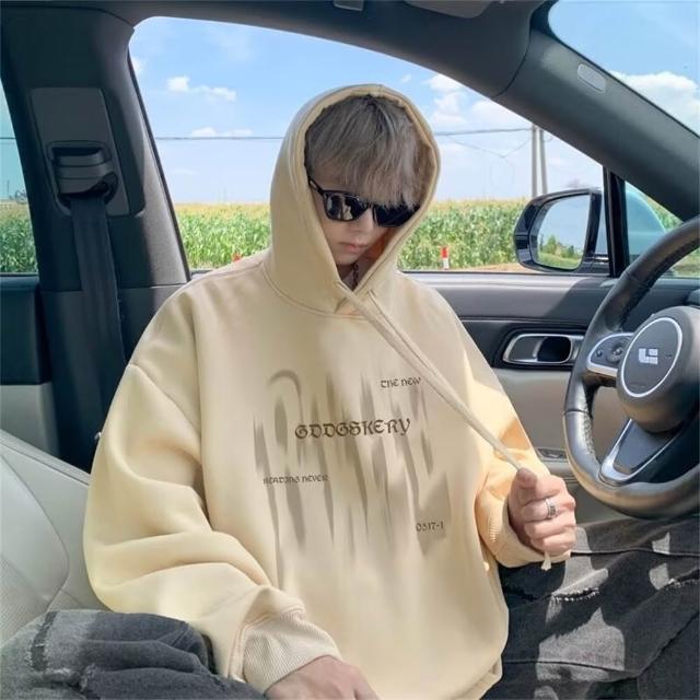 B1 地下室連帽上衣 美式歌德字體印花大學T 男生衣服 秋天穿搭 男裝 衛衣 加絨 大尺碼5XL【NL664010】