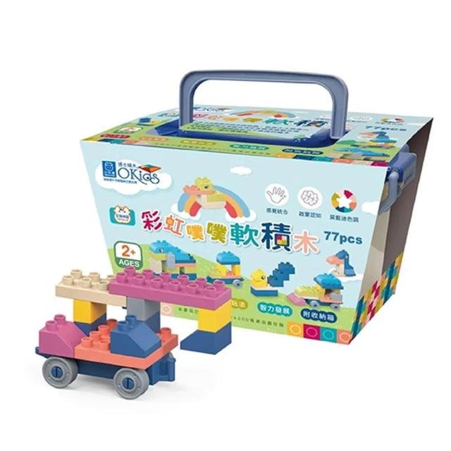 小牛津Okids博士積木彩虹噗噗軟積木-77pcs(STEAM玩具/感覺統合/附收納箱)