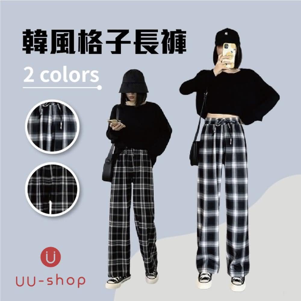褲子 台灣現貨 韓版 格子褲 格紋褲 百搭款 休閒長褲 直筒褲 女生褲子 黑白格紋 寬褲 高腰顯腿長 顯瘦 格紋長褲