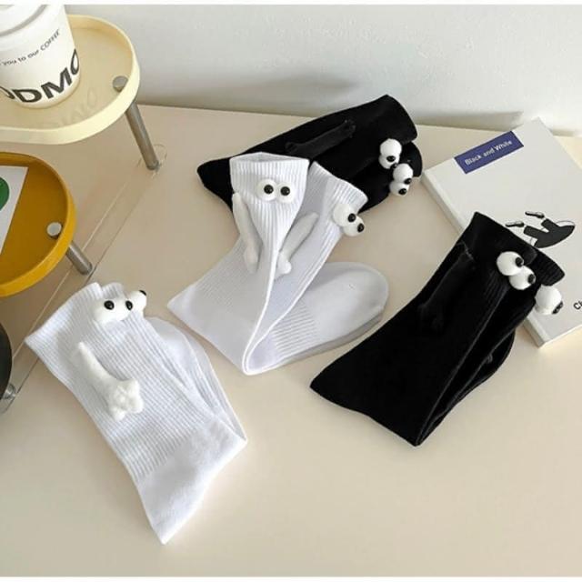 襪子 台灣現貨 小紅書同款 情侶牽手襪 磁鐵襪 中筒襪 抖音同款 網紅同款 情侶襪 拉手襪 牽手襪 中筒襪 磁吸襪