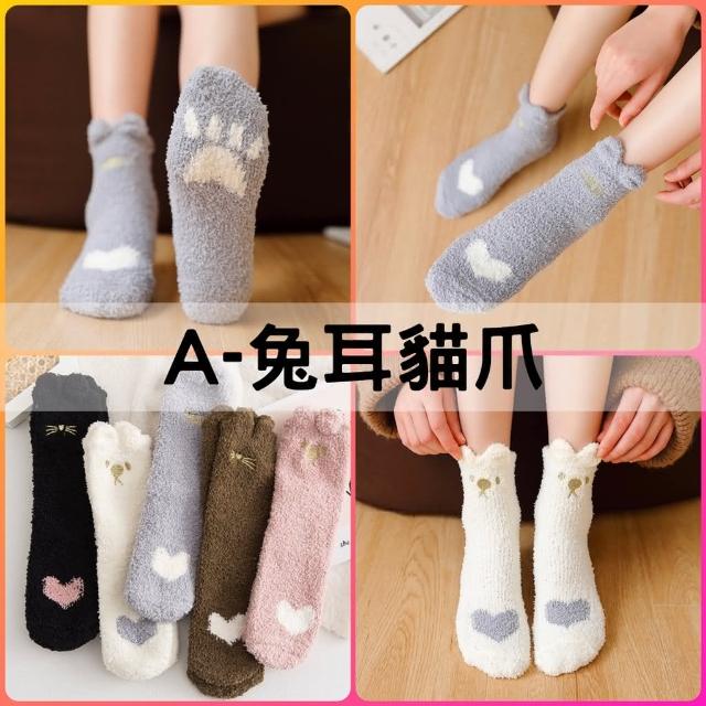 襪子 現貨 珊瑚絨襪子 保暖襪 珊瑚絨 中筒 貓掌襪 睡眠襪 冬季加厚保暖襪 兔子襪 加厚襪