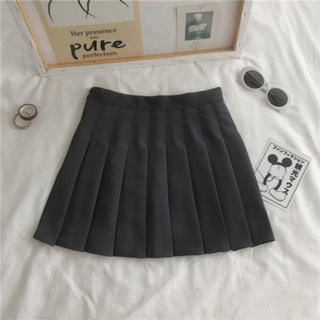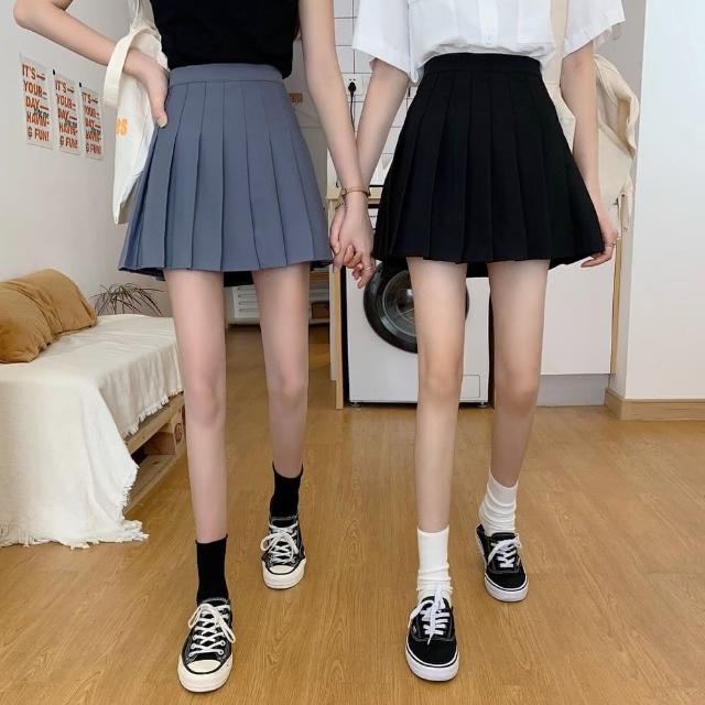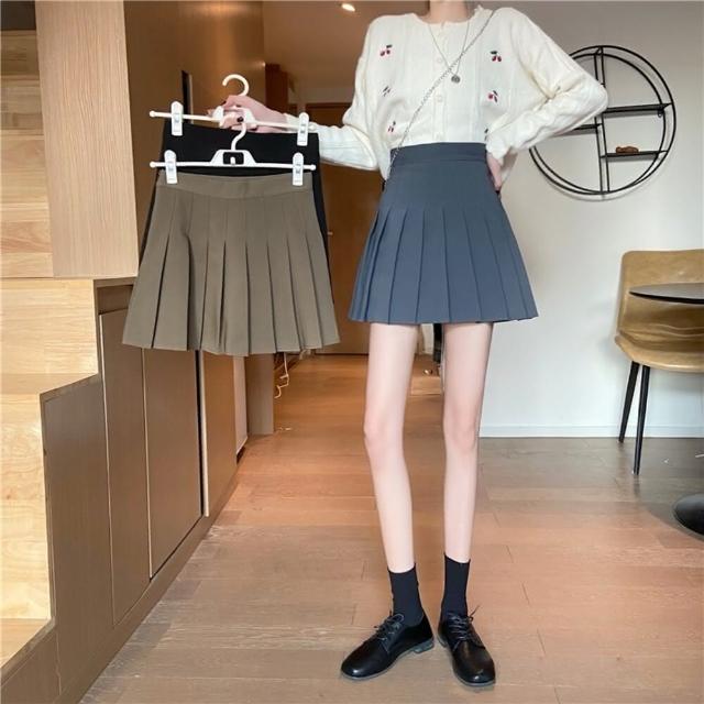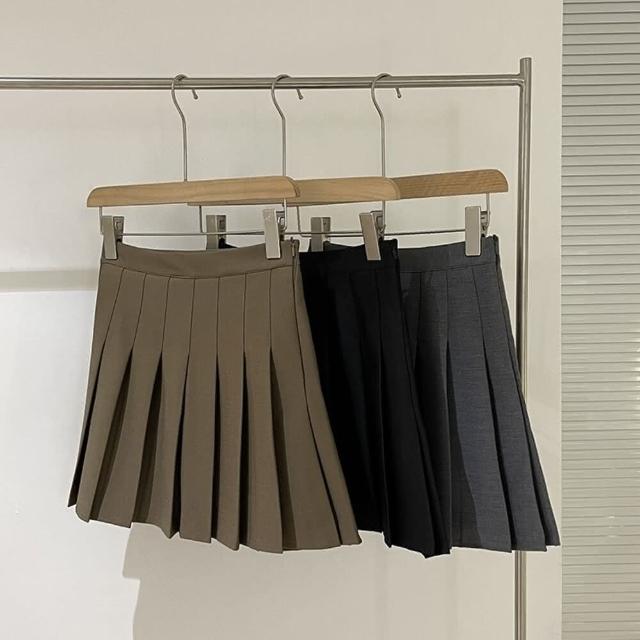 TINY GIRLS 日韓服飾F45✨現貨/加厚款/質感百褶裙/素色/奶茶色/黑色/灰色/A字裙/褲裙/學院風/顯瘦/高腰/半身裙/簡約/OOTD短裙