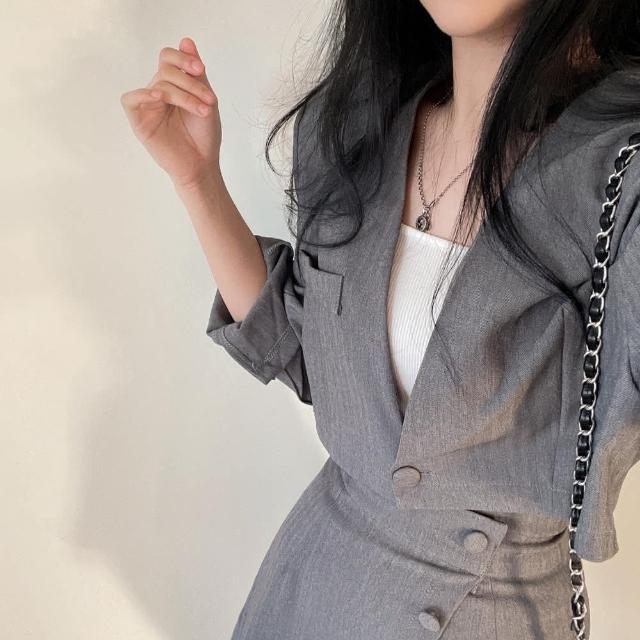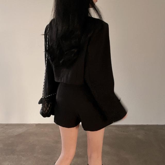 TINY GIRLS 日韓服飾P220✨現貨/氣質小姐姐~西裝套裝/西裝外套+短褲/西外/套裝/灰色/黑色/OL/正式/短版/包臀裙/半身裙短裙