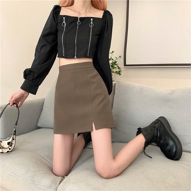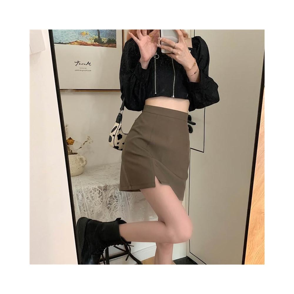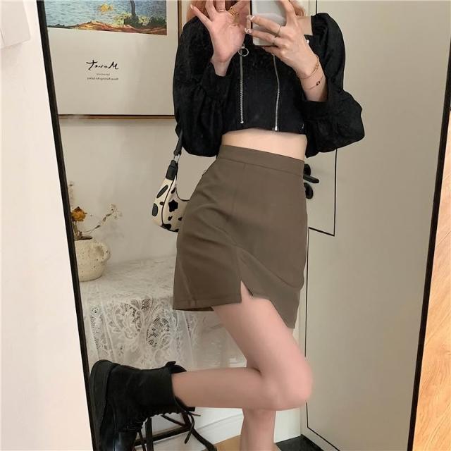 太妮絲F146 現貨 經典2色 韓系 雪紡開叉裙 OL 高腰裙 雪紡裙 裙子 短裙 a字裙 半身裙 包臀裙
