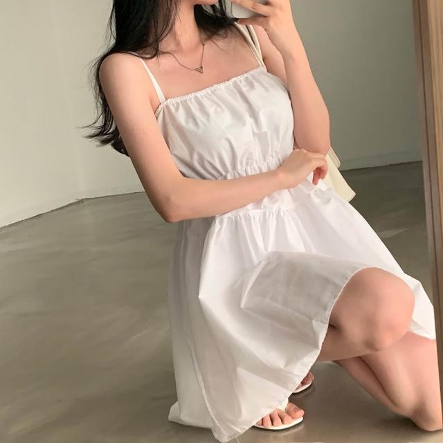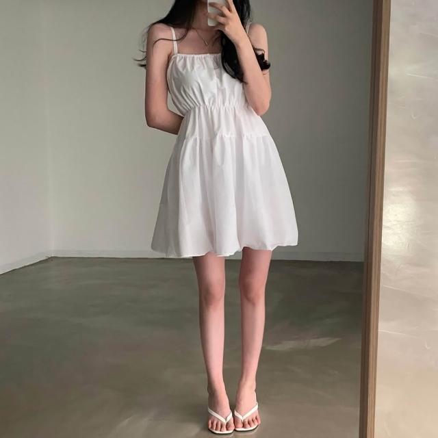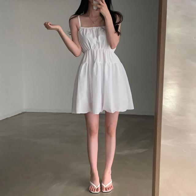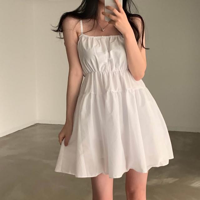 太妮絲F246 現貨 韓系 細肩帶短洋裝 白色洋裝 細肩帶 蛋糕裙 連身裙 洋裝 甜美 短洋裝 基本款 夏天洋裝