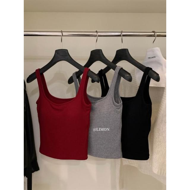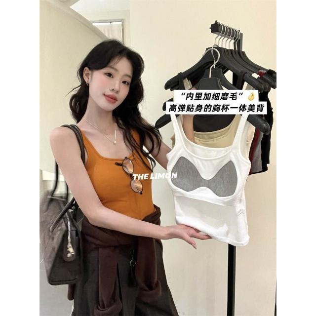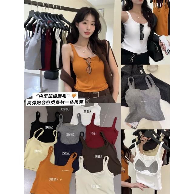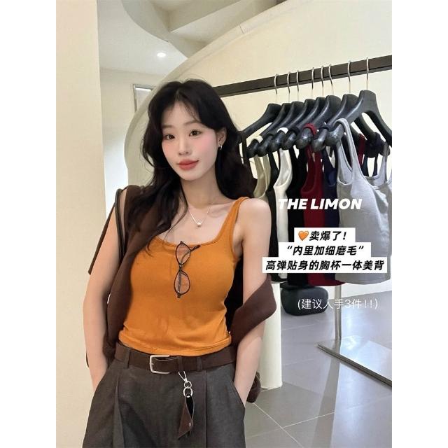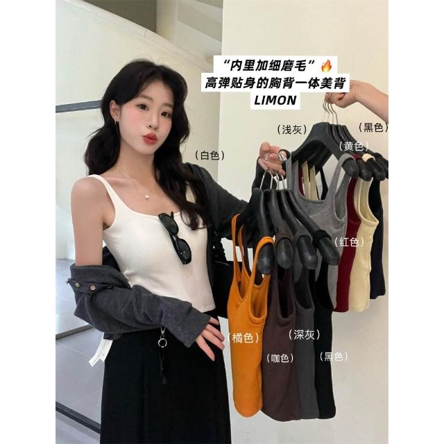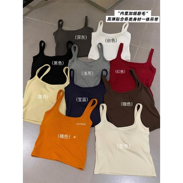 太妮絲LE323 現貨 韓系 高彈貼合內裡磨毛吊帶背心♡ 一體成形 小可愛 背心 INS風 檸檬家 背心 螺紋磨毛吊帶
