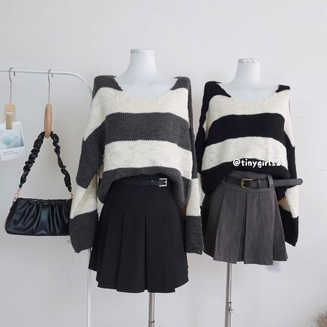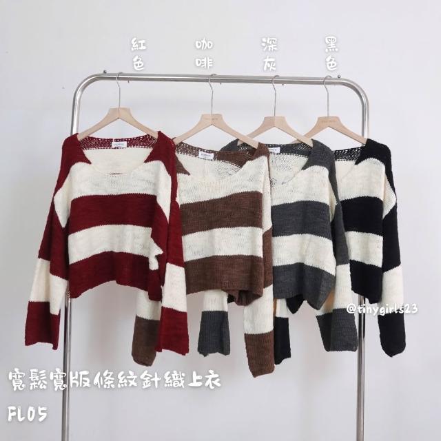 現貨 韓系 寬鬆寬版條紋針織上衣 條文 針織上衣 保暖 毛衣 針織毛衣 線條 橫條 紅色上衣