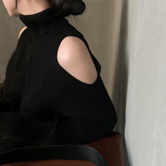 高領露肩針織毛衣 紅色毛衣 黑色毛衣 氣質 韓系穿搭 高領毛衣 冬天女裝 過年穿