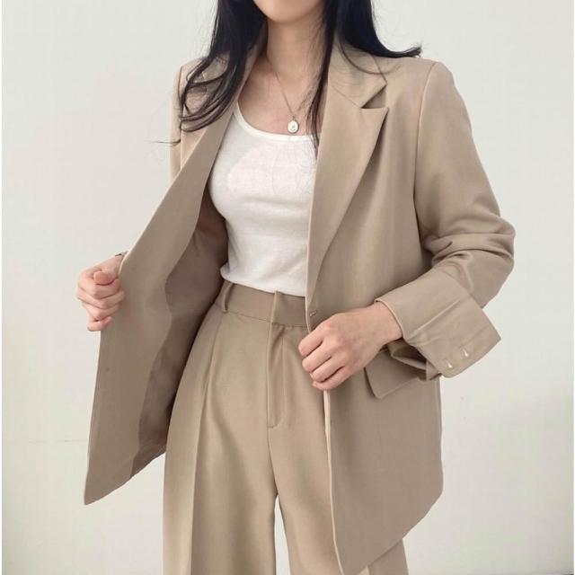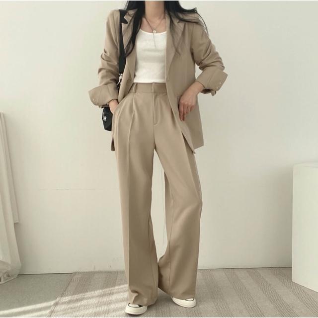 現貨 韓妞西裝套裝 西裝外套+西裝褲 素色 簡約 S-L 基本款 ins 休閒 西裝套裝 韓國設計OL