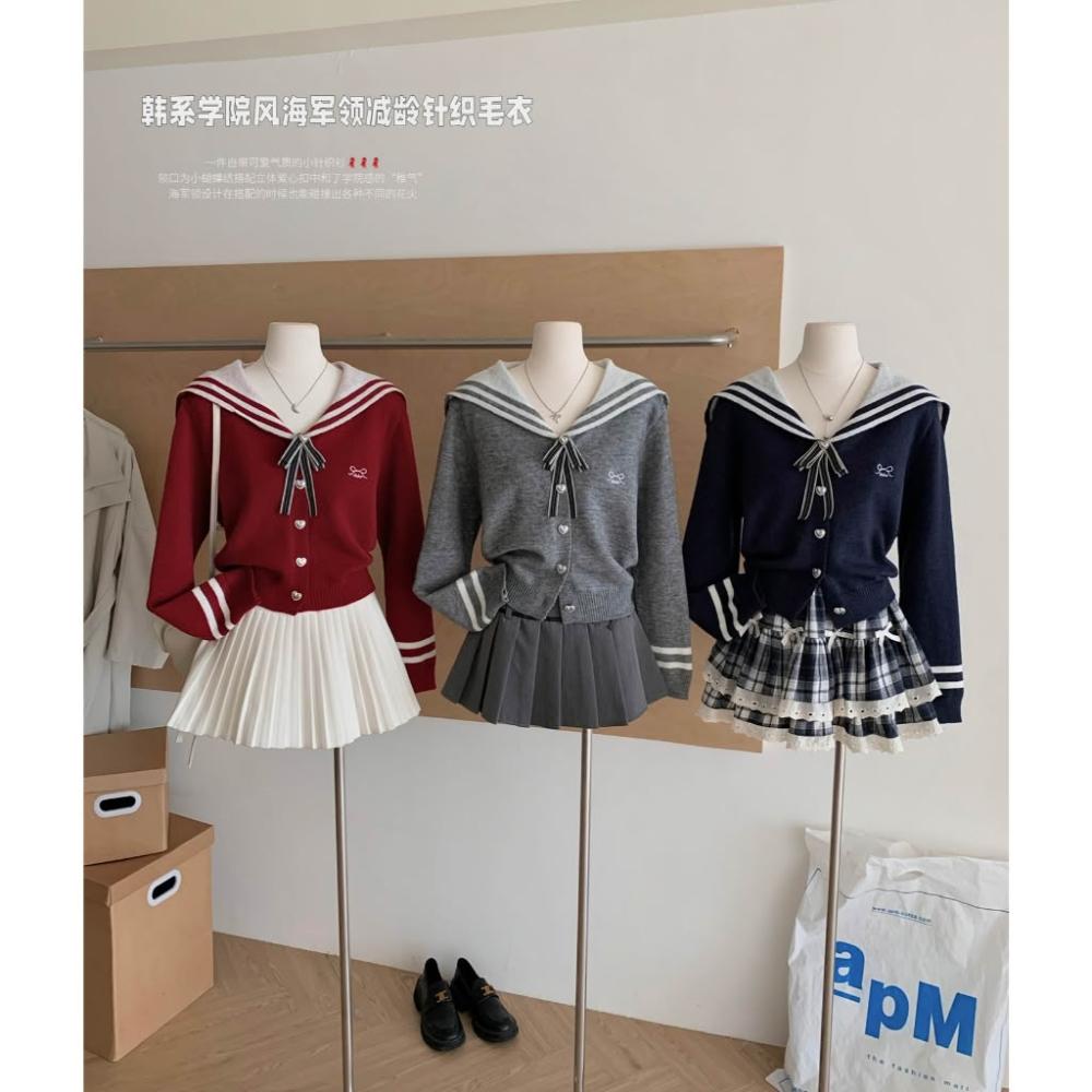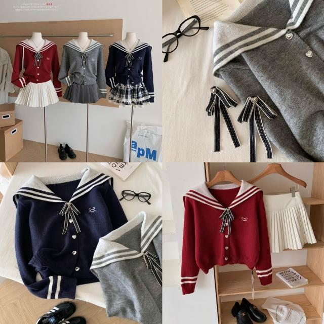 韓系 學院風 海軍領 針織外套 針織上衣 愛心扣 海軍領針織衫 甜美氣質針織外套 學生外套 小香風