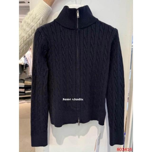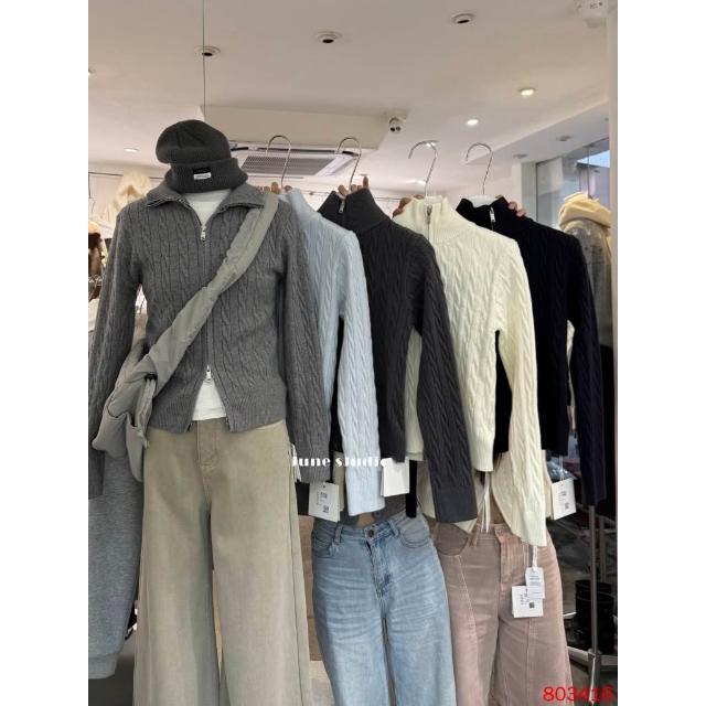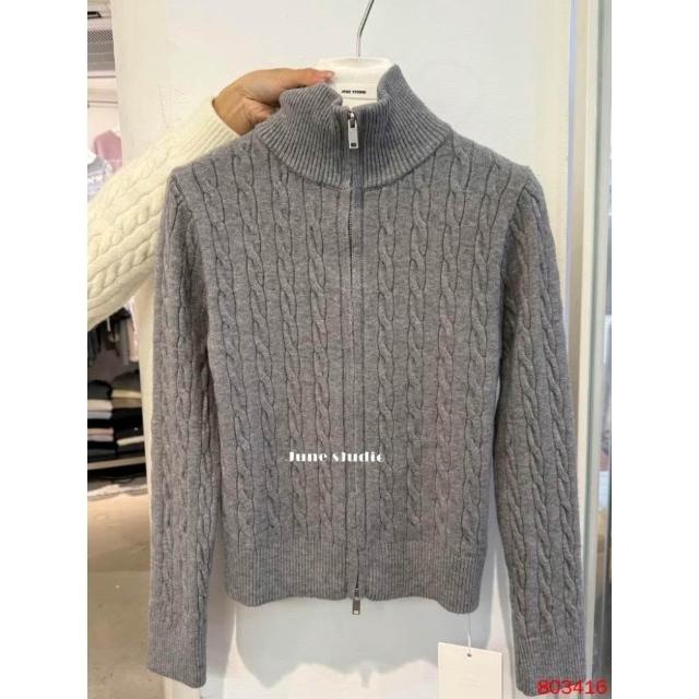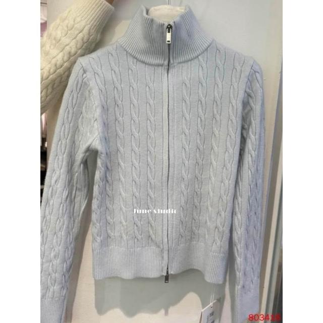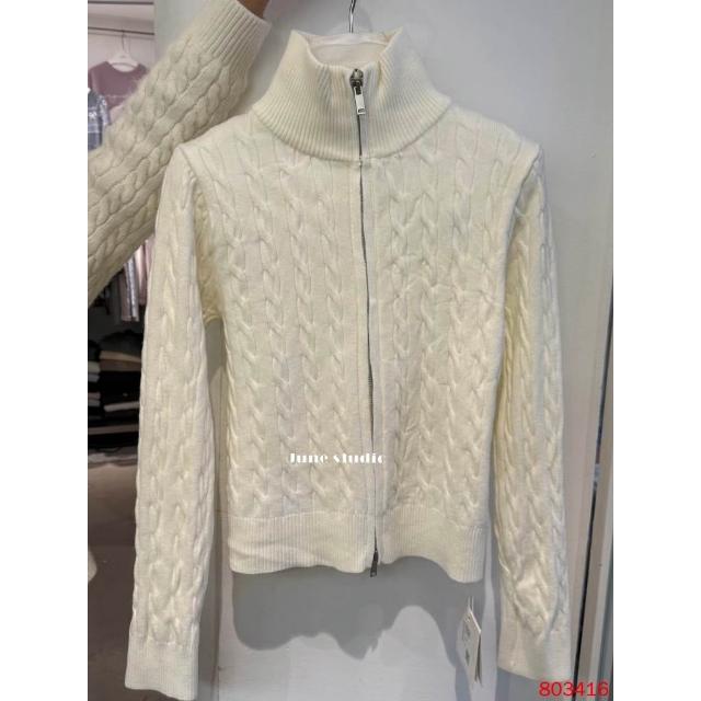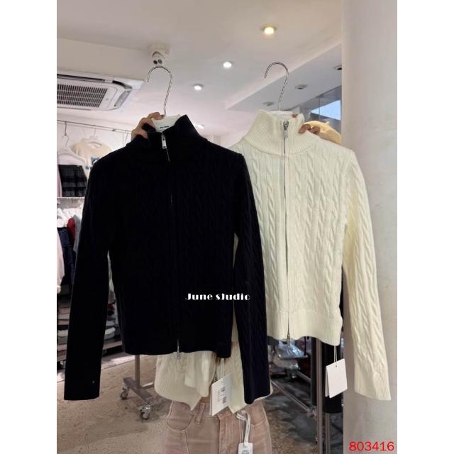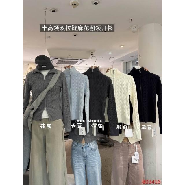 韓系 麻花半高領拉鍊針織外套 針織上衣 毛衣外套 雙拉鍊設計 保暖翻領針織衫 POLO領 針織外套