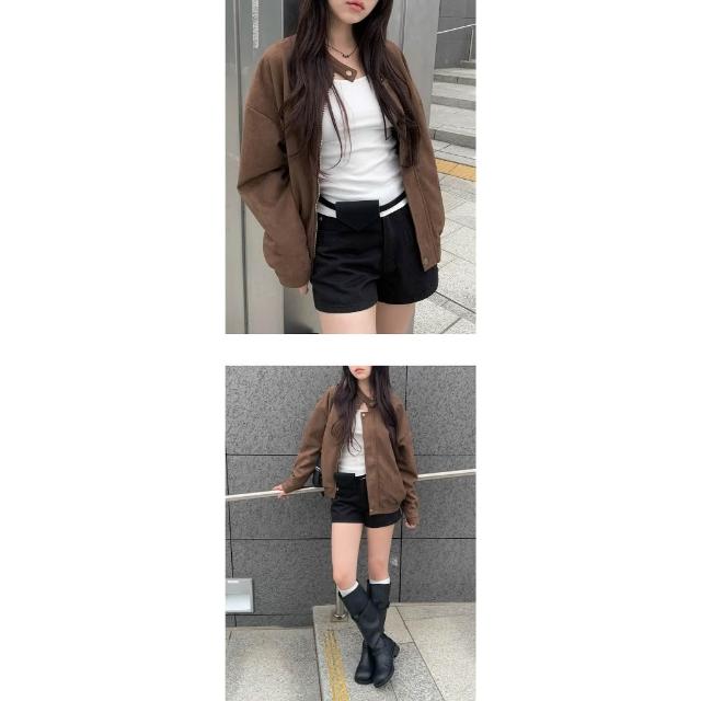 韓系休閒風 麂皮 外套 女生秋冬翻領夾克 寬鬆顯瘦外套 百搭短版麂皮夾克 棕色外套 韓妞 外套