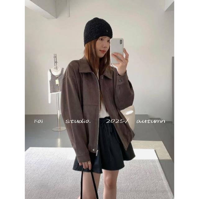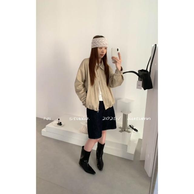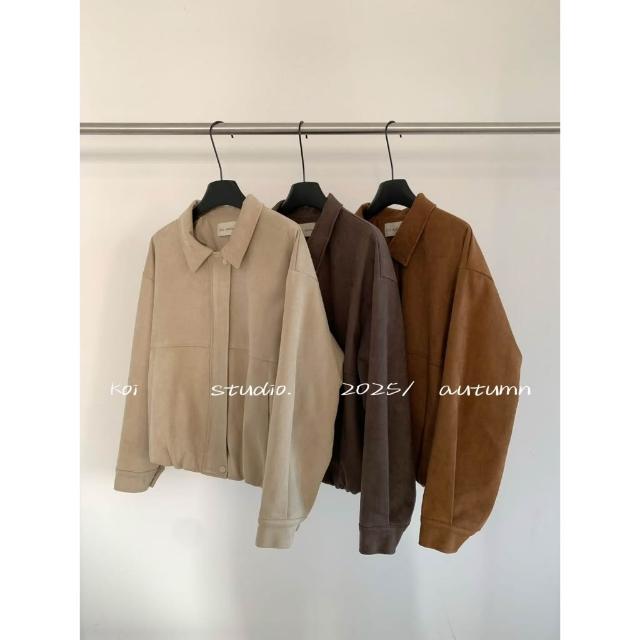 韓系 霧感羊皮絨短版外套 奶油麂皮絨 麂皮外套 秋冬 霧感上衣 寬鬆休閒外套 百搭小香風短外套 氣質