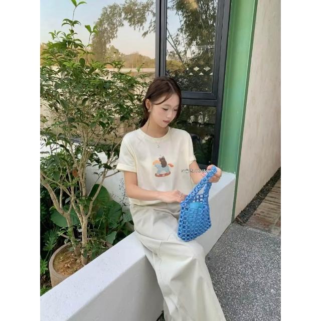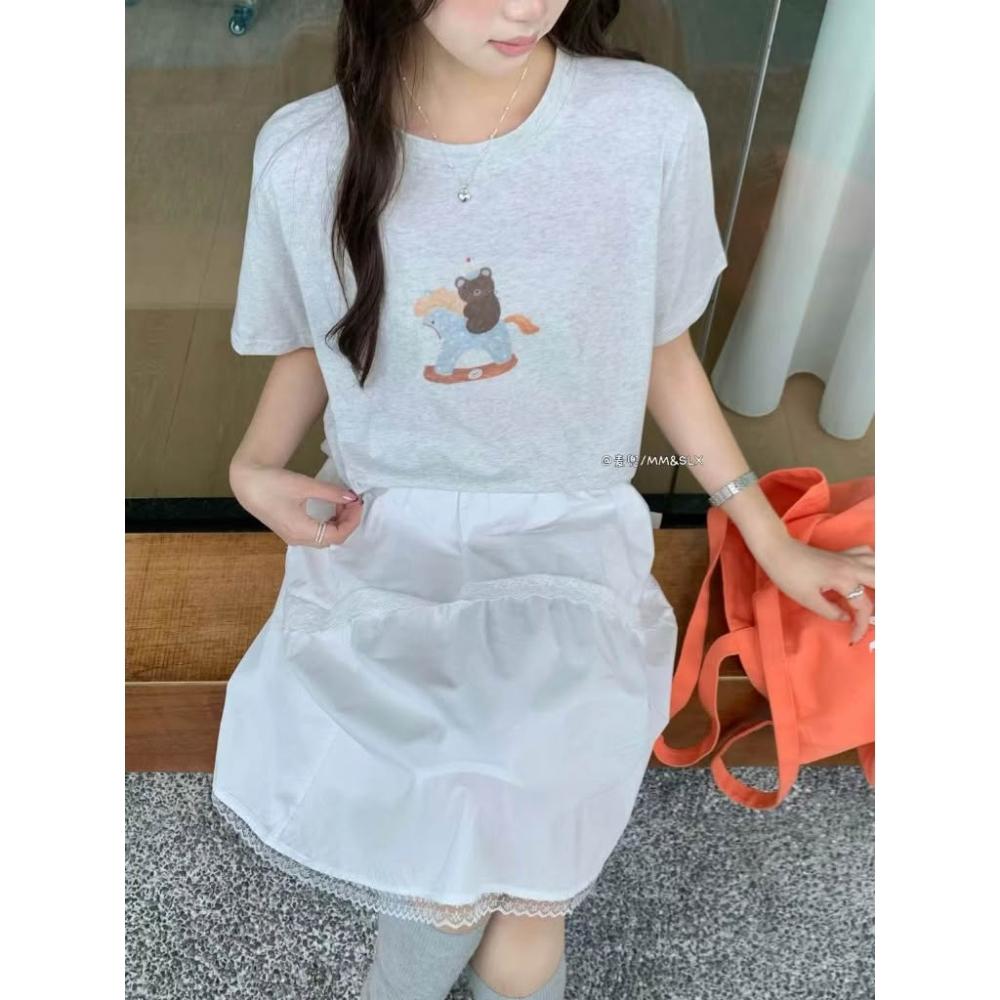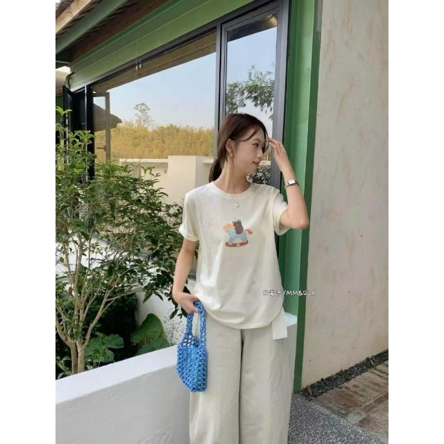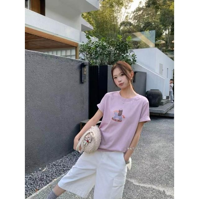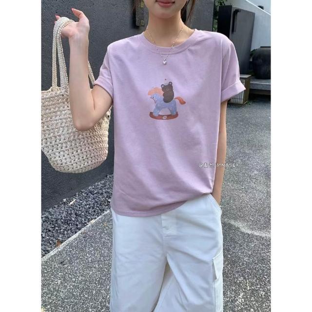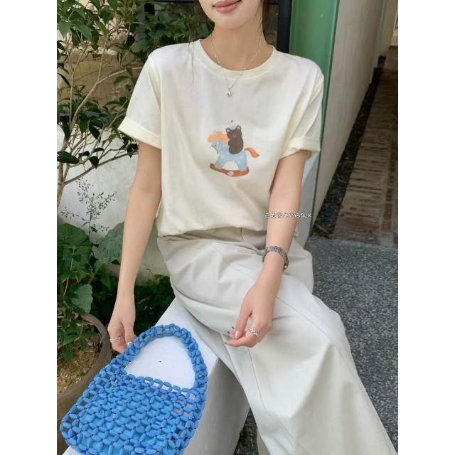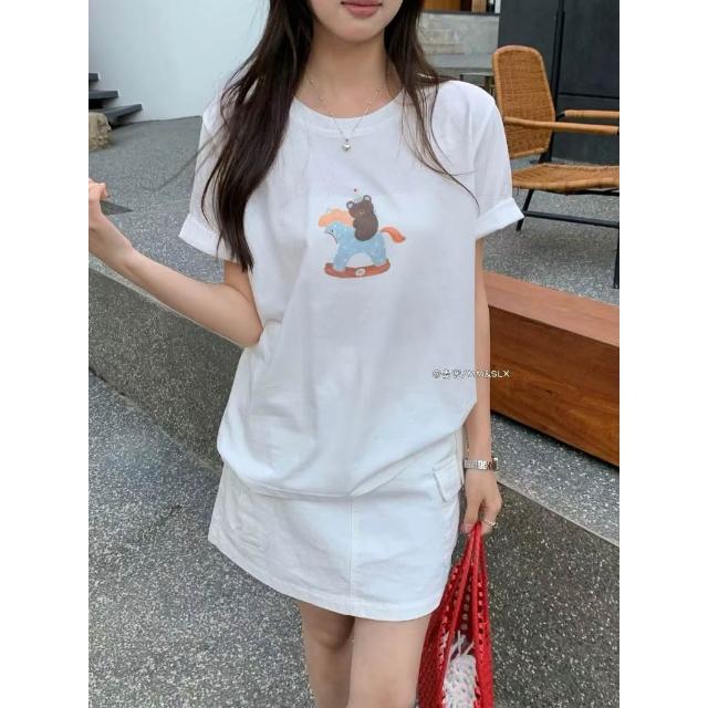 TINY太妮絲SL21現貨 韓系 小熊木馬日常T 短袖上衣 夏季短袖 可愛 基本款 寬鬆 休閒T 女生短袖上衣