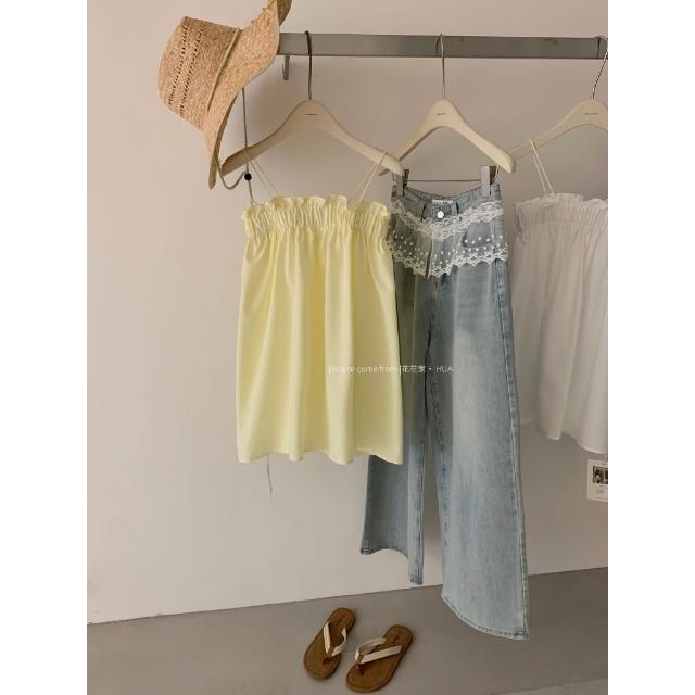 韓系 抓皺背心 傘擺上衣 中長版 顯瘦 穿搭 遮肉上衣 背心 平口 寬鬆版型 細肩帶 小可愛 夏季上衣