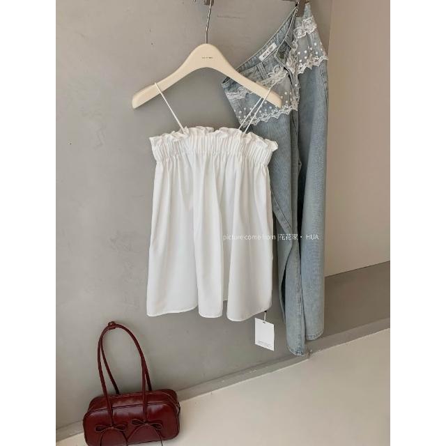 韓系 抓皺背心 傘擺上衣 中長版 顯瘦 穿搭 遮肉上衣 背心 平口 寬鬆版型 細肩帶 小可愛 夏季上衣