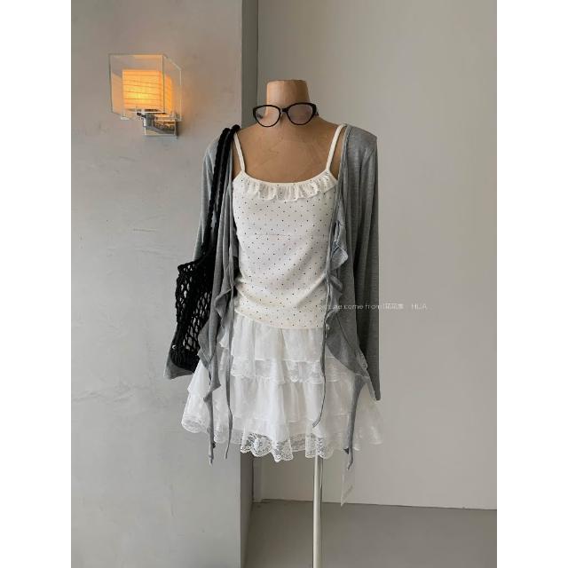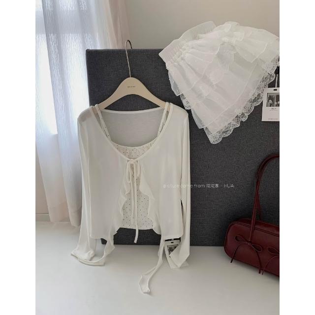 韓系 三件套 背心+外套+蛋糕裙 蕾絲 韓系套裝 小個子穿搭 罩衫 約會 小可愛 點點 小外套 套裝