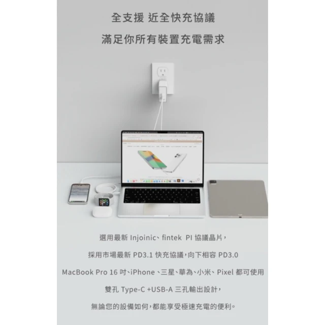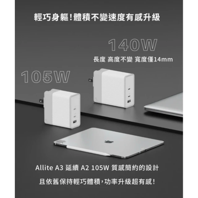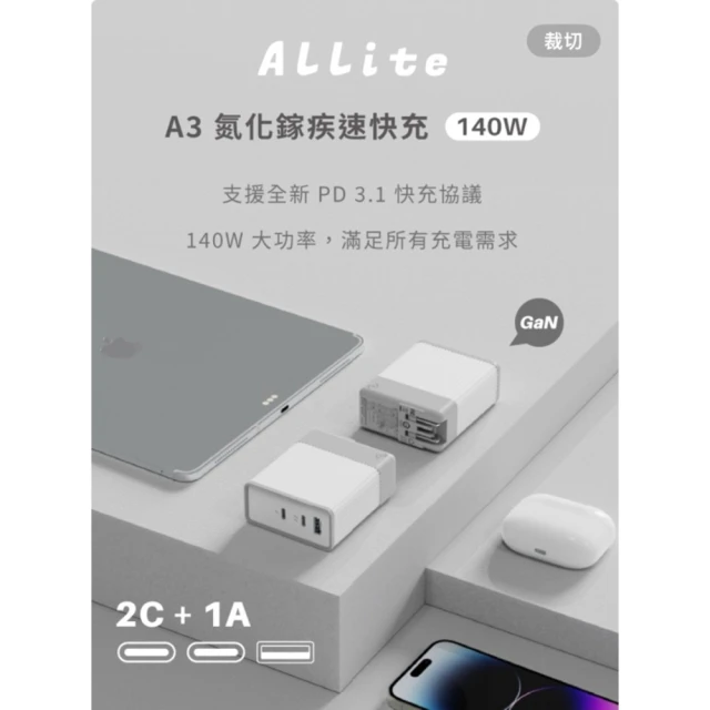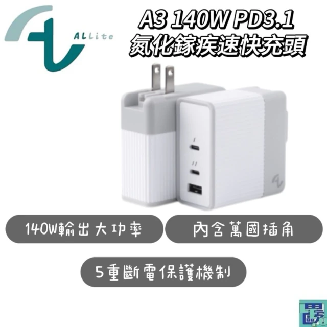Allite A3 140W PD3.1 氮化鎵疾速快充頭(PD充電器 萬國插角 氮化鎵充電器 充電頭快充頭 電源供應器) Leo 里歐