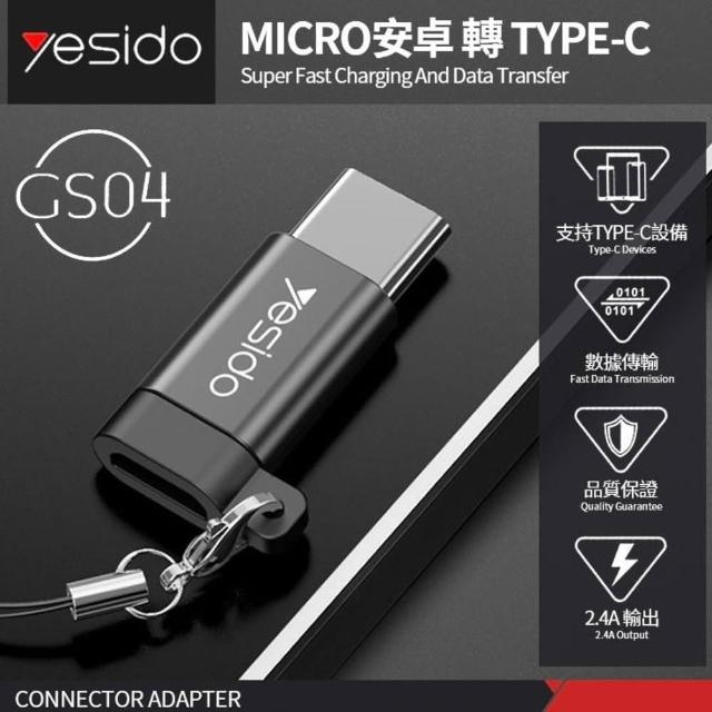 Yesido GS04 母Micro轉公Type-C轉接頭 安卓轉type-c充電傳輸 攜帶便利 鋁合金外殼 防丟掛繩 Leo 里歐